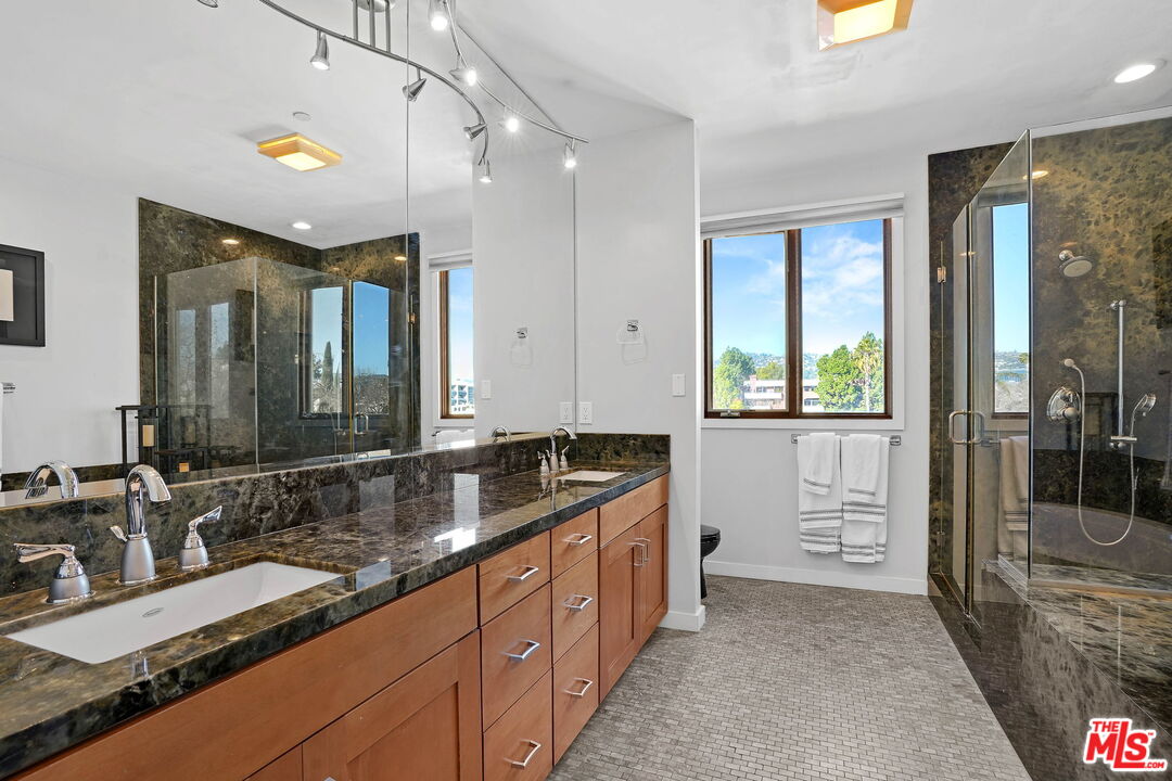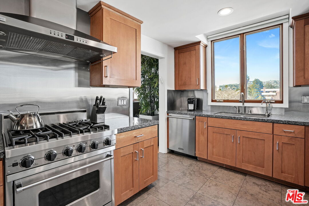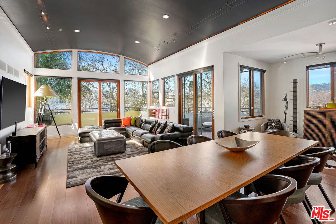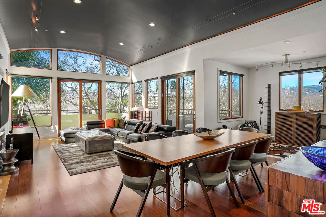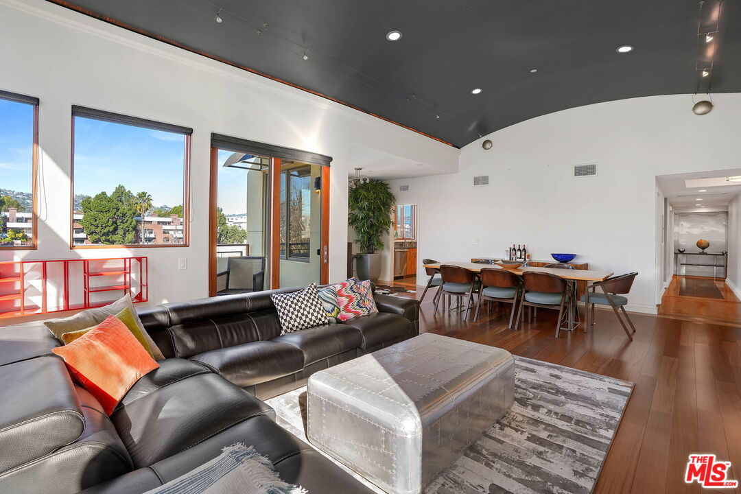 Situated North of Wilshire in Beverly Hills awaits this contemporary West facing penthouse with 3 beds & 3.5 baths. A sweeping open floor plan welcomes you upon entry and is flooded with an abundance of natural sunlight through floor-to-ceiling windows. The sophisticated dining & living spaces are accented by barrel vaulted ceilings, built-ins, and two balconies where you can lounge or dine while enjoying views of the Hollywood Hills. Cook your favorite meals in the sleek chef's kitchen with top-of-the-line Viking appliances, ample cabinetry, granite counters, large pantry, breakfast bar, and dining nook. The sprawling primary suite features two walk-in closets, a soaring ceiling, wrap-around balcony, mesmerizing DTLA views, and gorgeous marble clad bath with dual sinks, soaker tub, & glass shower. Additional home amenities include two generous guest suites, hardwood floors, cove LED lighting, surround sound, custom shades, dual zone HVAC, two storage units, four assigned guest parking spaces, and so much more. The coveted boutique building offers secured keyless entry and a private fitness center. Centrally located in a world-class setting, move-in today and relish seamless access to the best of Beverly Hills including top restaurants, shops, and entertainment!