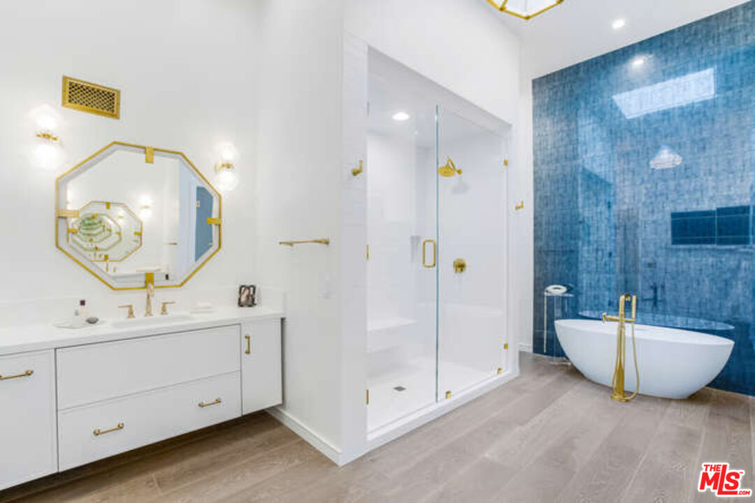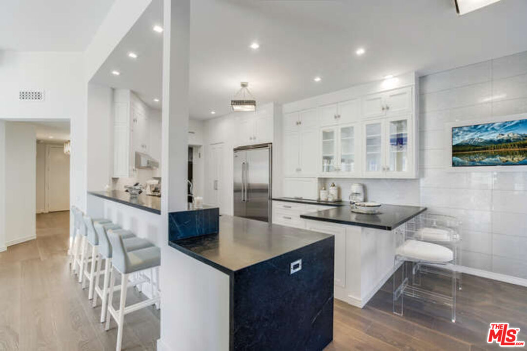 Elegant and peaceful, this gorgeous Century City residence is a sophisticated refuge of rare comfort and beauty. A brand-new, top-to-bottom renovation highlights the units palatial dimensions, wonderful flow, and beautiful natural light. With 12-foot ceilings, two spacious terraces, and the unmatched amenities of the Le Parc community, this very private, top-floor home is the perfect setting for luxurious living and entertaining. In addition to new electrical and sound-proofed oak floors, quality details include custom recessed lighting and sconces by Urban Electric, Gabriel Scott, and YLighting, plus Buster + Punch hardware. To accent their soaring height, the living room and dining room ceilings are finished with Phillip Jeffries white-gold-leaf paper. A large terrace opens off the living room, with ample room for dining and entertaining overlooking the propertys treetops and manicured grounds. The chefs kitchen features all-new Viking appliances, marble countertops, walk-in pantry, and generous counter seating, as well as another terrace, with a new Coyote gas grill, shared with the Parisian-style glass-enclosed dining room. Located in its own wing, the primary bedroom has a spectacular tray ceiling, multiple closets, including a custom cedar closet, and a sparkling bath with dramatic raised ceiling, custom vanity and tub, and an electric retractable skylight with automated cover. Two additional en-suite bedrooms, both with new windows, include one suitable for a private office, with a murphy bed. Additional new amenities include designer blackout shades, keyless locks, Arlo security cameras, and a brand-new safe. The Le Parc community is known as one of the Westsides most prestigious addresses. French Normandy in style, it was built in 1979 and has been rigorously maintained for beauty and privacy. In addition to 24-hour guard-gated security, residents enjoy tennis courts, a fitness center, a clubhouse, and two sparkling swimming pools and spas. The grounds are magnificently landscaped with ponds, fountains, and serene patios and seating areas for private moments. This is an exceptional and distinguished home in a location of unsurpassed convenience and comfort.
