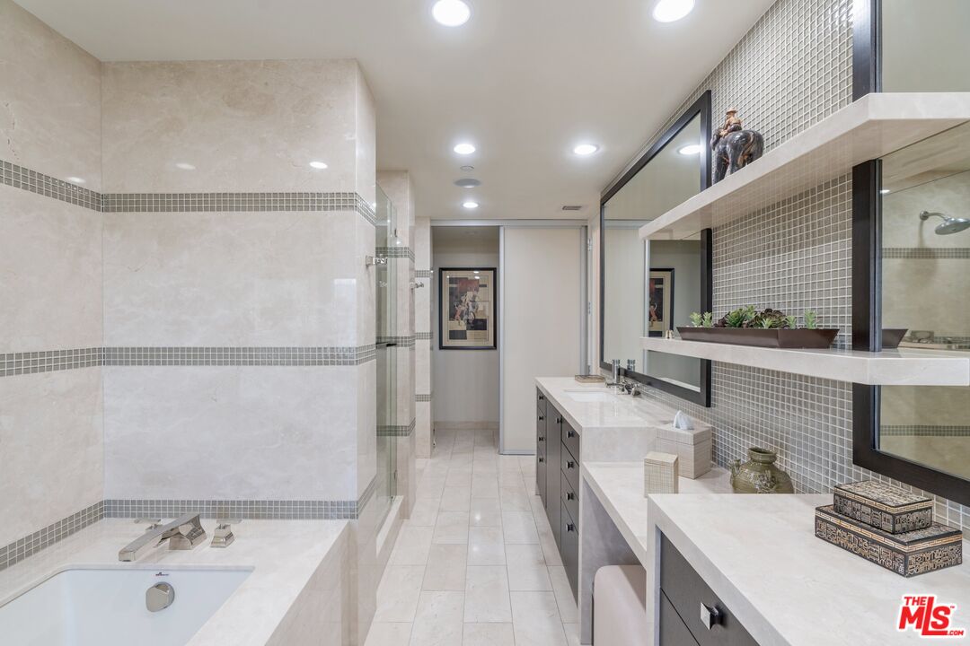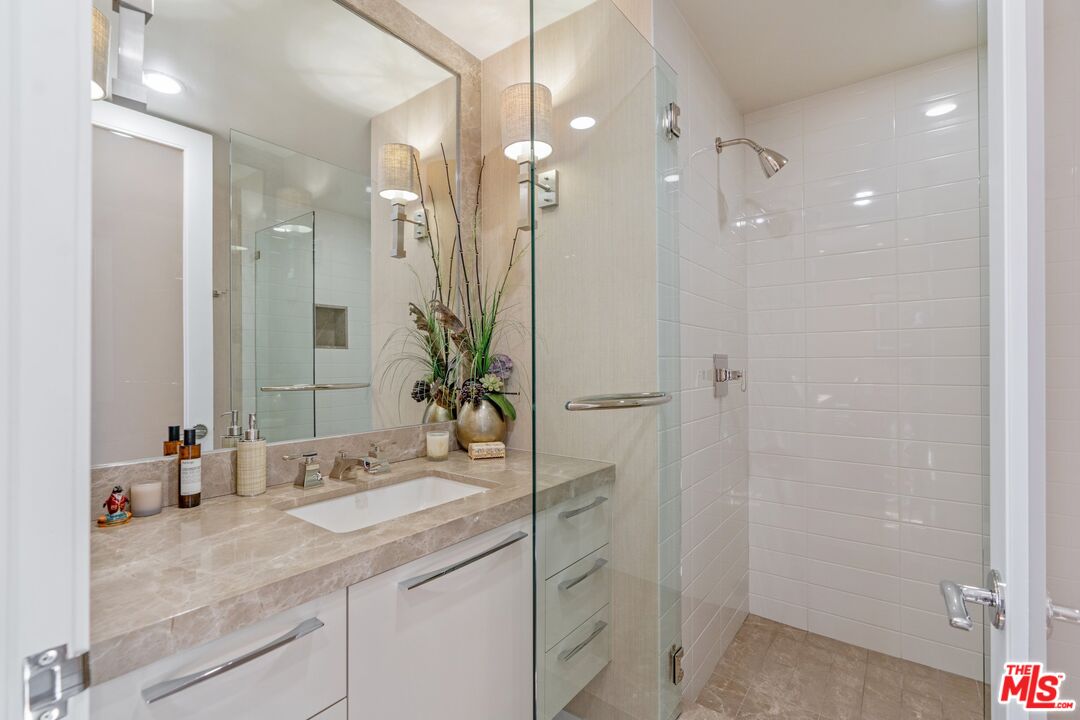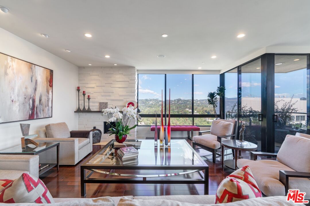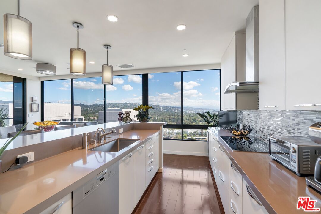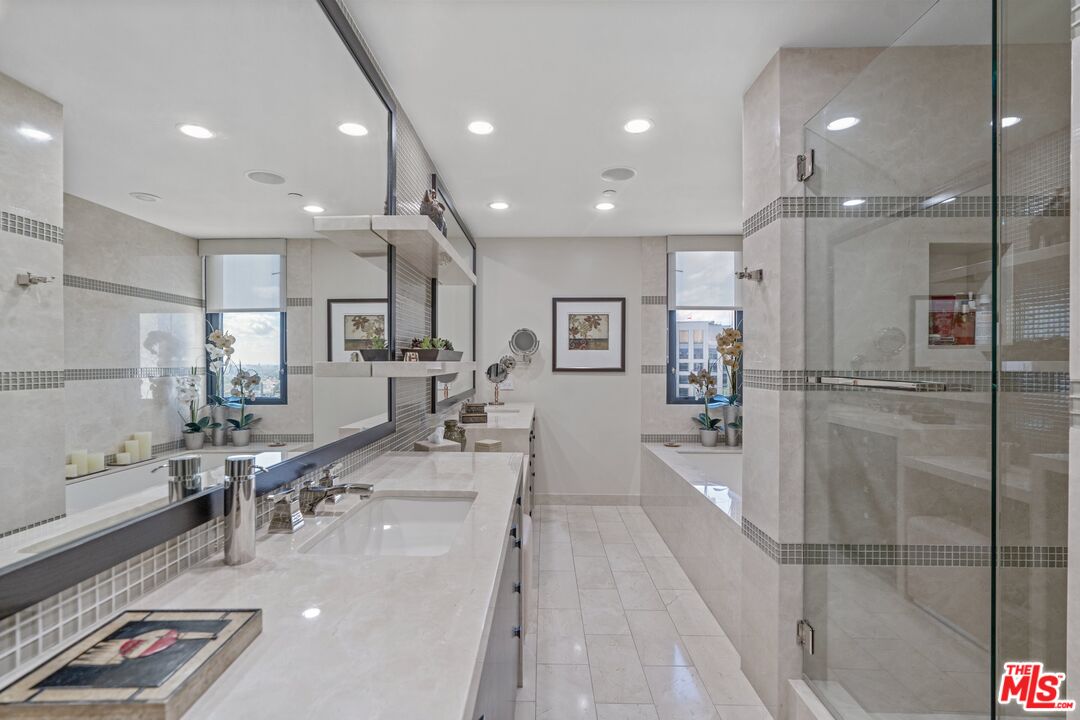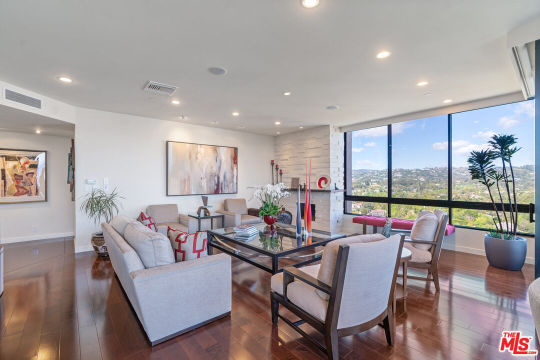Rare opportunity to purchase a stunning renovated Penthouse with 2 Bedrooms and a Den with sweeping views from the Bel Air Hills and LA Country Club to downtown LA and Century City. Step into a modern contemporary style unit with no expense spared. This luxury high rise condo at the exclusive Diplomat on Wilshire has it all with hardwood flooring and exquisite use of marble and stone. The gourmet Kitchen with stainless appliances has a breakfast bar. Spacious Living and Dining area with a generous size Den. All rooms have large picture windows showcasing the magnificent views. The Main en suite Bedroom has custom built -ins and a walk in closet. The guest Suite with Southern exposure has its own bath. There is a separate Powder Room and Laundry Room. Private patio is located off of the living and dining area which is perfect for entertainment and enjoying the views. Add'l features: Two SxS parking spaces with outlet for electric car charging, Storage space, Concierge, Doorman/Valet, Pool and Gym. Minutes to Beverly Hills and Century City's shopping and dining.