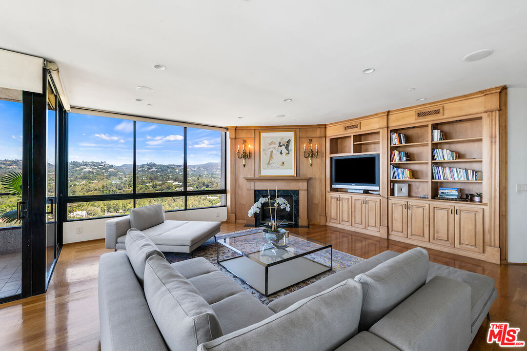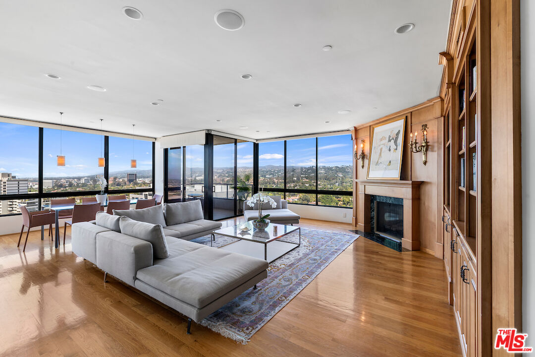 Live on top of the world in this luxurious Penthouse at the Diplomat. As soon as you walk in you will be stunned by the spectacular panoramic views of the city, ocean and mountains. This tastefully remodeled unit features stunning views from every room, an open concept living/dining area with beautiful hardwood floors, built in bookcases, fireplace and a terrace to enjoy the views from. Fully remodeled kitchen with granite counters and stainless appliances. The primary suite features a walk-in closet and spa like bath with separate tub and shower. There is also a guest suite that can be used as a den or office with built in Murphy bed, en-suite bath and ample closet space. The unit also features a powder room for your guests. Building amenities include valet parking, doorman, concierge, gym and pool and spa. HOA fees include earthquake insurance, water, cable, internet and building amenities. This is the one you have been waiting for!
