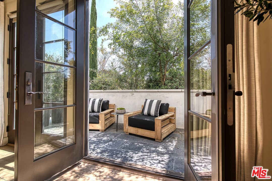 Very rare newly built Ashton Cortina (2016) front corner and street-facing designer-done unit in Westwood's prime location. Situated on tree-lined Ashton Avenue, this luxury unit is surrounded by multi-million dollar homes. It offers complete privacy, security and tranquil setting, yet is within walking distance to Westwood Village. The home has no shared walls. The unit is South-facing, allowing for lots of natural light all day long. The floor plan is open, airy, and easy flowing with the kitchen, dining room, living room and bedrooms having near floor-to-ceiling sliding doors and windows with tree and green views. Two sets of over-sized French doors adjoin the dining room that opens to a beautiful private slate stone patio surrounded with greenery to enhance privacy, and opens the home with indoor/outdoor living. There is a huge private side patio that extends the length of the unit, a large (private and locked) storage unit in the garage, and two tandem assigned parking spaces in a controlled access and secured structure. The home boasts an elegant blend of modern style with traditional architecture artfully expressed in high-end finishes and materials. It features a Nest Smart Thermostat, grand foyer entry, stunning European wide-plank White Oak hardwood floors, Italian marble flooring in baths, LG stainless steel side-by-side W/D in enclosed closet, and LED recessed lighting and high ceilings throughout. The designer kitchen boasts elegant cabinetry with custom painting, stainless steel Bertazzoni range/hood and Bosch appliances, and Italian marble countertops with subway tile backsplash to the ceiling. The living room offers a beautiful inviting fireplace with large windows that opens to the kitchen and dining room, which is highlighted by a Serge Mouille style chandelier. The luxurious master suite features large side-by-side opaque glass closets and a sumptuous master bath with soaking tub and glass shower. All three baths have custom painted cabinets, marble tile floors, and shiplap wood paneling. There is custom window treatment throughout with blackout shades in the bedrooms, and custom drapery in the living and dining rooms. All in all, this is the ultimate in luxury living in the heart of Westwood, with only 14 units and 4 stories, easy entry and exit, and with low, low HOA fees ($617), as compared to sky-high HOA fees on Wilshire corridor.