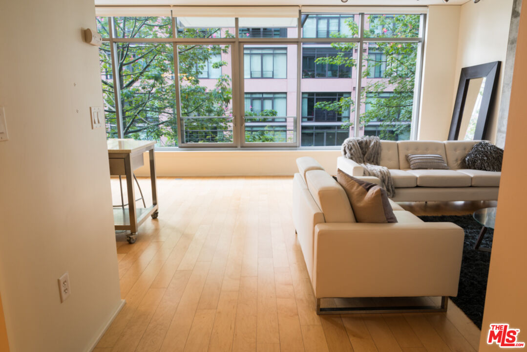 Serene and secluded nature views in the middle of the city! East facing 1 bed/1 bath loft filled with natural light in the luxurious LUMA building. Light brown wood floors, stainless steel finish appliances, kitchen island, Cesar stone counter tops in kitchen and bathroom, washer/dryer inside, and a large custom walk-in closet. LUMA is a LEED certified GOLD building resulting in very low electric costs (average about $50/mo for this unit). Building amenities include gym, pool, hot tub, sundeck, and BBQ area on large outdoor common area terrace. LUMA is a full service luxury high-rise building with 24/7 security and concierge. In the heart of South Park, this excellent location is within walking distance of the Staples Center, LA Live, Regal Theaters, Prank Bar, The Palm, Ralph's, Starbucks, Whole Foods, and all of Downtown's restaurants and hot spots. Sale includes 1 reserved parking space in building. Property is shown in photos with furniture. Currently unit does not have staged furniture.