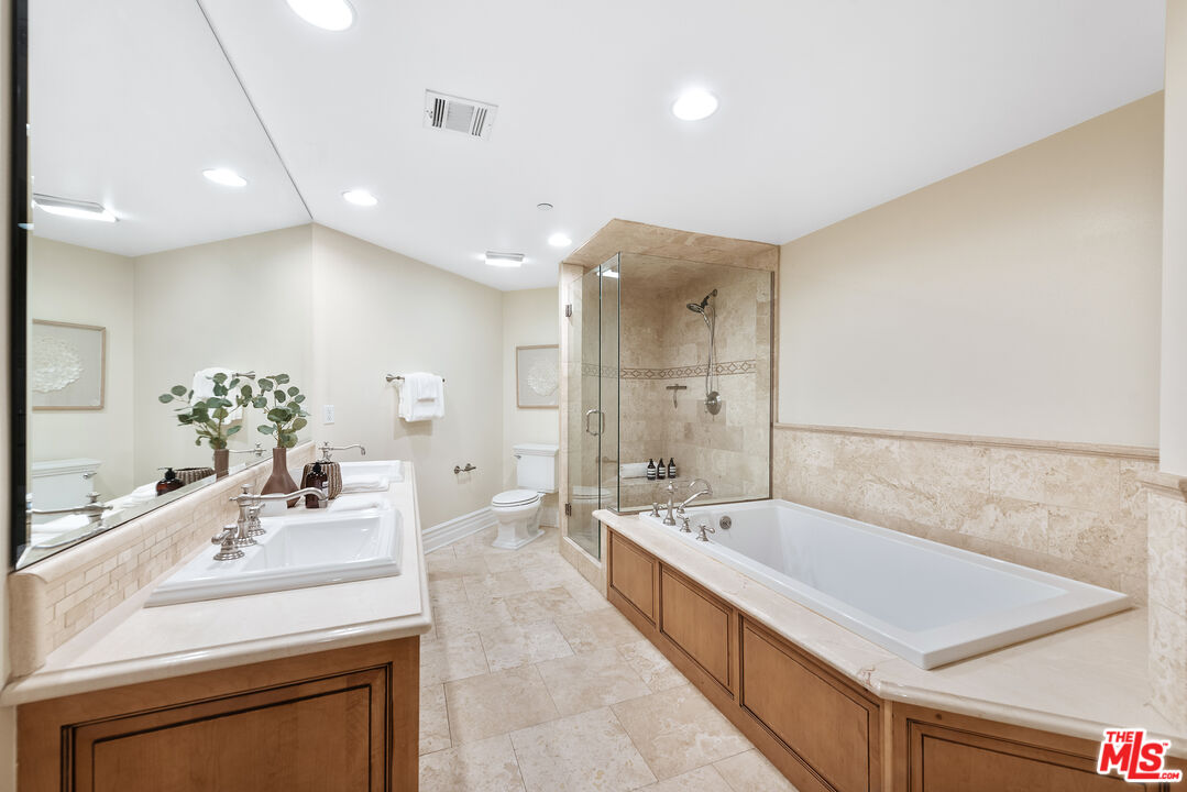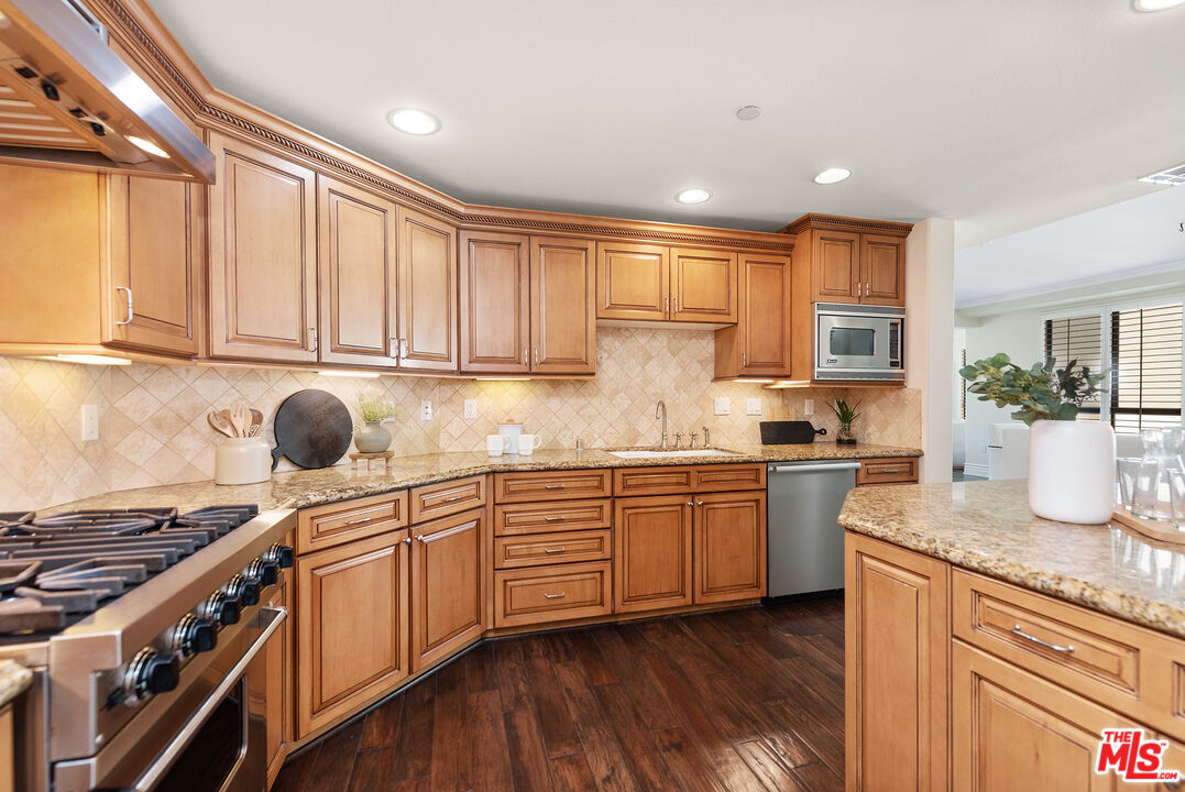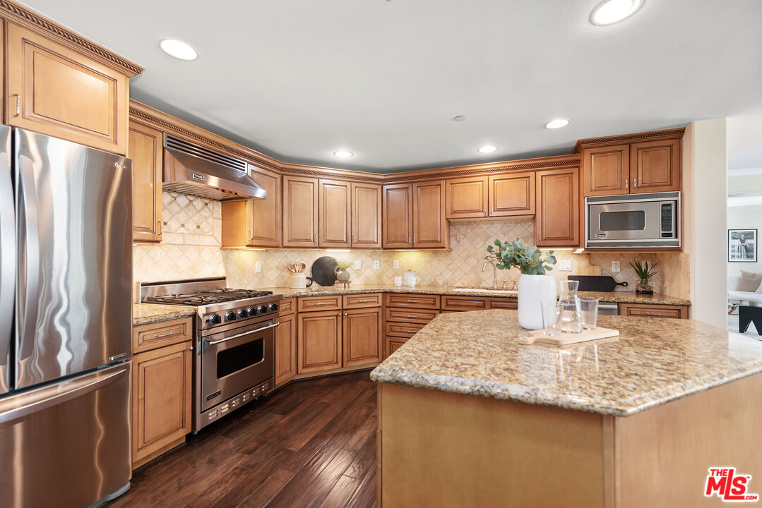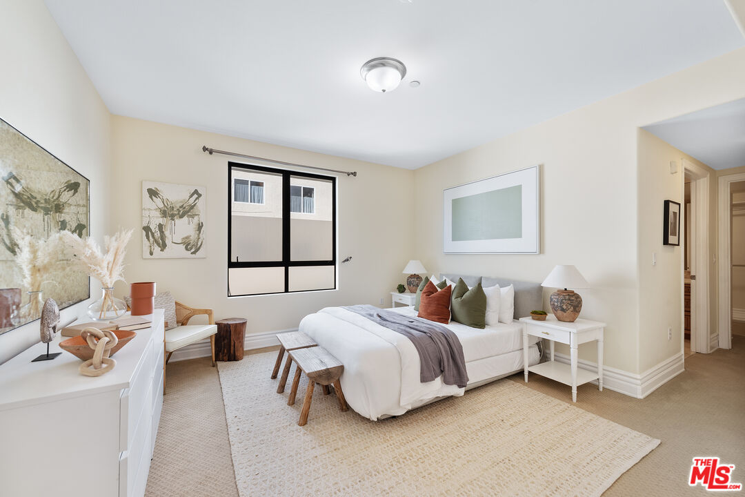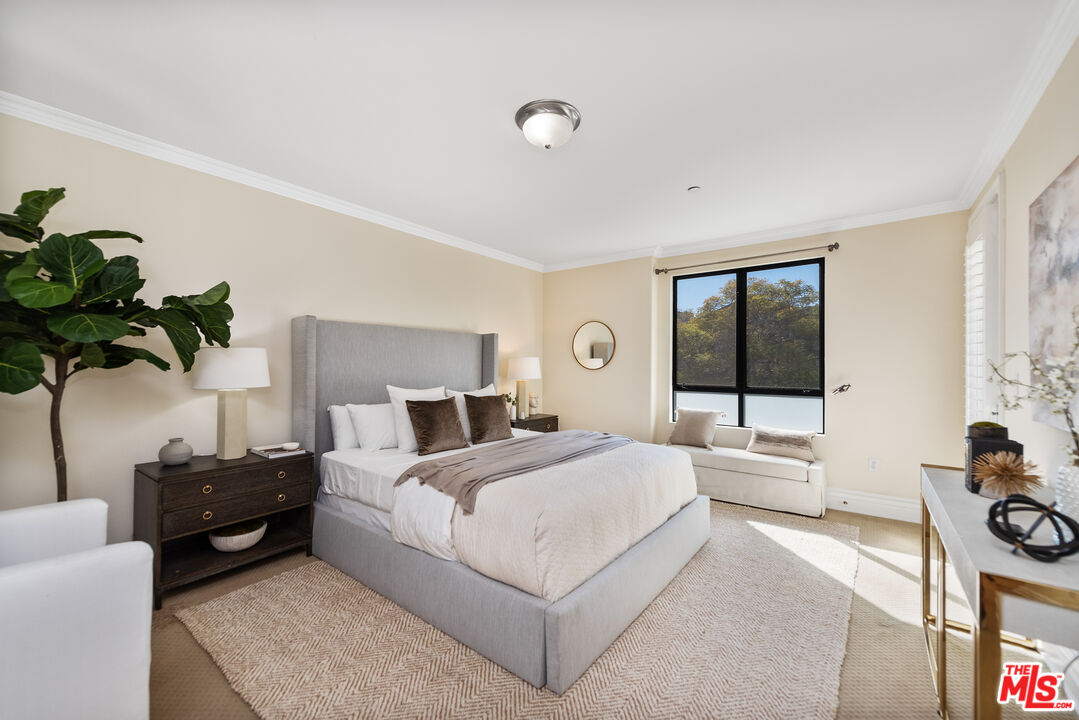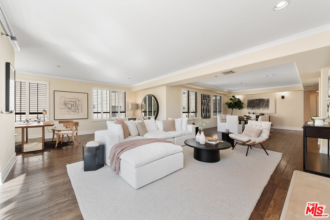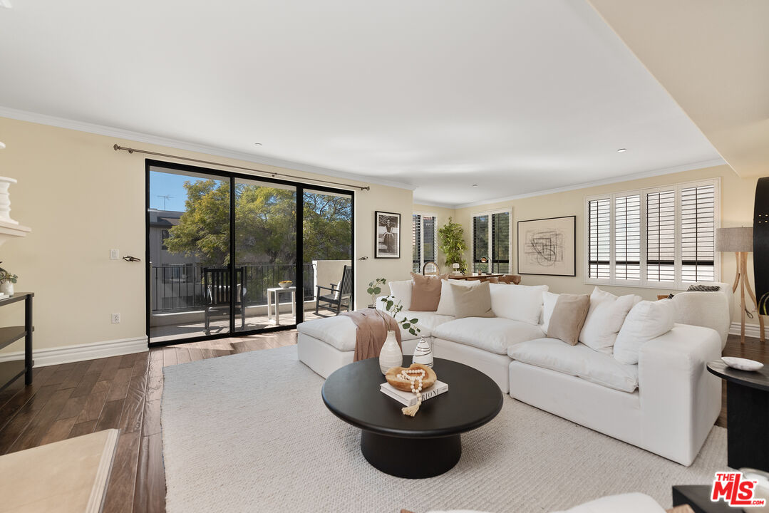 Built in 2005, this 20 unit building is one of the best buildings in Westwood, and this floorpan is the largest of the five per floor. It is an elegant, street facing unit with 2,310 square feet of interior space. This corner unit features an open floor plan on one level with beautiful hardwood floors and high ceilings with crown molding. The modern two-bedroom, two-bathroom configuration showcases large windows for maximum light for the living and dining room with a gas fireplace. Open chef's kitchen is finished with granite countertops, abundant cabinetry and equipped with Viking appliances. The light filled den offers space for work or relaxation and views of the Jacaranda trees that bloom with purple flowers in the spring & summer. An expansive primary suite includes a large walk-in closet, custom built-in cabinetry and ensuite bath with double-vanity, step-in shower and roman soaking tub. Enjoy the California sunshine from your private balcony off the living room that provides a tree-lined view of the "less-trafficked" street with space for outdoor lounging and a BBQ grill. The Courtyard on Camden is an exquisite building with a fountain courtyard entrance, lush greenery, elevator, and secured underground parking garage with two assigned spaces for the unit. Extensive video security system with separate access codes for front entry and elevator. Minutes from local shops, restaurants, UCLA and Westwood Village.