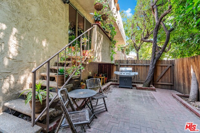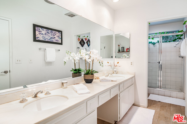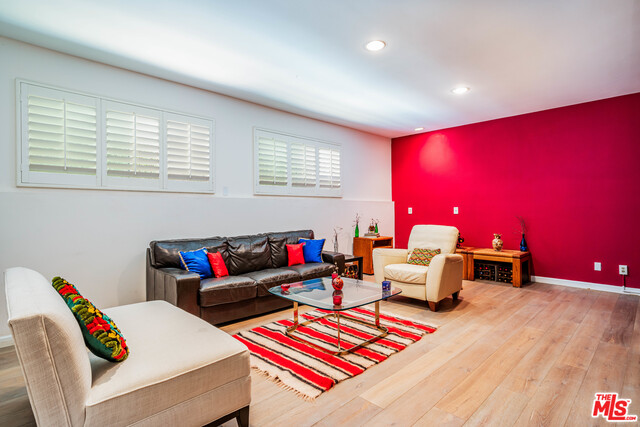 Large turnkey Westwood Townhouse has 3 Bedrooms / 2.5 Baths and a large 390 square foot bonus room on the lower level. Only 4 units in the building. The spacious Living Room includes a Fireplace, Recessed Lights, a Wet Bar and opens to a balcony that leads to the Private brick Patio. Hardwood / Laminate floors throughout. The Kitchen has a separate Breakfast Area and a Laundry area with a side-by-side Washer/Dryer. Upstairs are a large Master Suite with a walk-in closet and its own balcony, 2 other bedrooms and a hallway bath. The bonus room is on a lower level with direct access to the community garage with side by side parking. Close to UCLA, shops & restaurants.