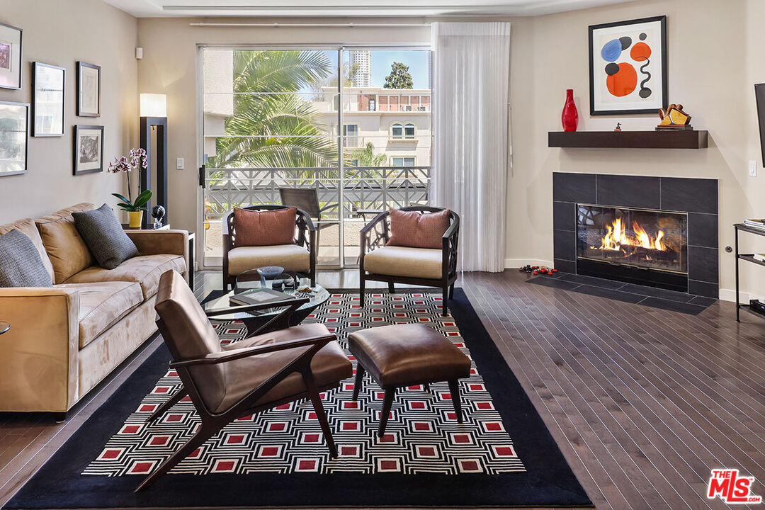 Welcome to this front facing, sun-drenched 2 bedroom and 2.5-bathroom condo in the heart of Century City! With the flexible open floorplan and tree-lined views, you can entertain with an indoor/outdoor feeling from the balcony or relax in front of the fireplace. The kitchen features updated stainless steel appliances with plenty of counter space and storage. The spacious primary suite has a nice-sized walk-in closet and its own fireplace. The primary bath has a walk-in shower, separate soaking tub and dual sinks. The secondary ensuite bedroom is on the opposite side of the unit providing maximum privacy with access to the balcony. There is a generous sized in-unit laundry room and dual pane windows in the bedrooms.. Secure and gated, this unit comes with two side-by-side parking spaces and ample guest parking. The amenities include access to the fitness center, outdoor hot tub and locked storage for each unit. Located near shopping at Westfield Century City and moments from the trendy restaurants on Westwood Ave.