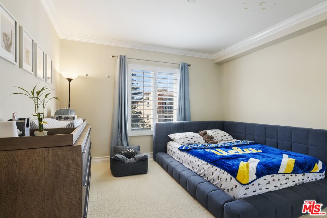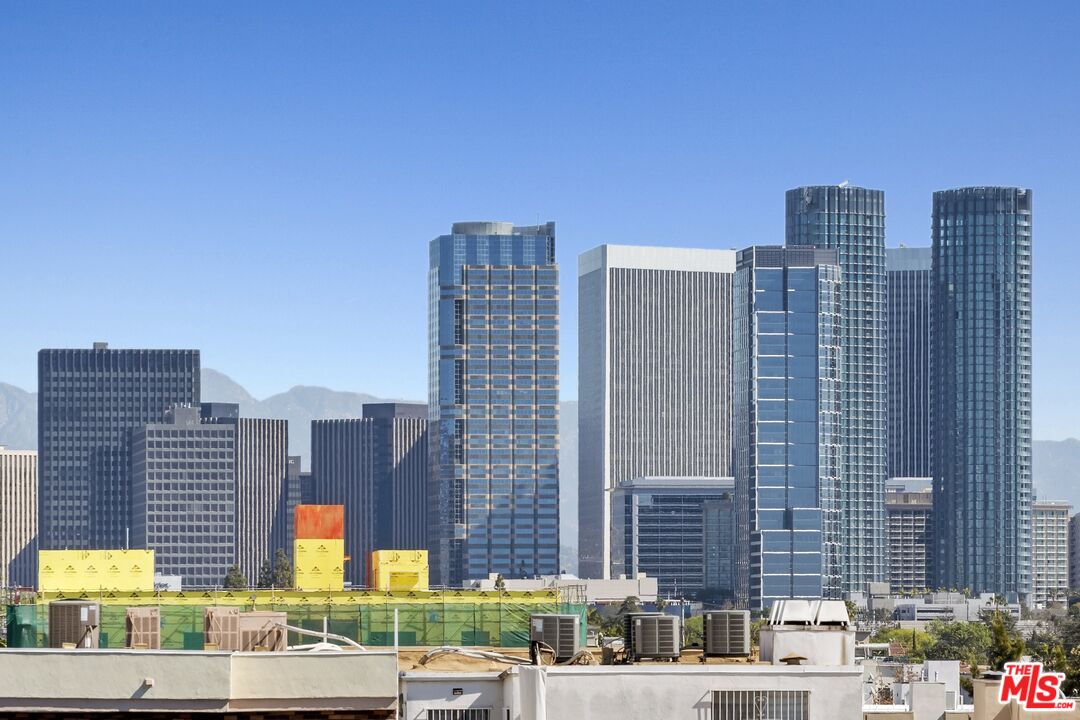 Beautiful 3 bed/2.5 ba front-facing designer PENTHOUSE unit w/ private rooftop deck overlooking panoramic city views in beautiful Contemporary Mediterranean building on treelined street. Spacious open floor plan filled with natural light features living rm with fireplace, sliding door to front facing balcony with treetop views. Dining room opens to breakfast bar & oversized chef's kitchen with granite countertops, high-end stainless steel appliances including 6-burner Viking range/oven, wine fridge, newer dishwasher, microwave and refrigerator. Large primary bedroom suite with room for desk/sitting area & 3 closets including 2 walk-in closets. Marble finished master bathroom with skylight, dual basins & separate bath & shower. Stairway leads to private rooftop patio w/ incredible city views for year-round enjoyment. Additional features include hardwood floors, plantation shutters, crown molding, central ac/heat & newer carpet in bedrooms and newer washer/dryer in unit. Tandem secured 2 parking spaces, guest parking, Earthquake Insurance included in HOA dues, extra storage, pets ok & 2 outdoor areas. Ideal proximity to the Westfield Century City Shopping Mall, UCLA, the new Google Campus & Westwood Blvd. restaurants, coffee shops & retail. Westwood Charter School. Move-in ready!