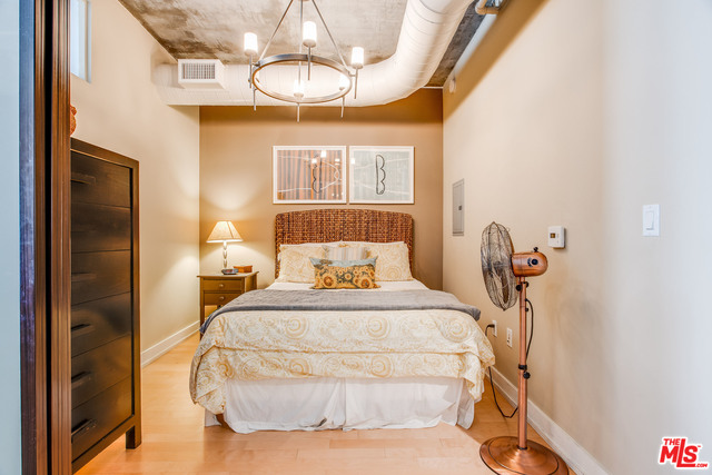 Looking for a spacious one-bedroom unit with lots of light and storage? This is the unit for you! One of the largest one-bedrooms in Market Lofts at almost 1,000 square feet, this upgraded unit has hardwood floors, a separated bedroom with sliding doors, track lighting, and plenty of built-in storage. The west-facing views provide abundant light and views of downtown LA buildings. Stainless steel appliances. In-unit washer/dryer. Market Lofts has all of the on-site amenities that you could want, including a swimming pool, spa, fitness center, clubhouse, movie screening room, and 24-hour security. Located above Ralphs and just a short walk to Petco, Whole Foods, many restaurants, and Staples Center. Set up an appointment to view today!