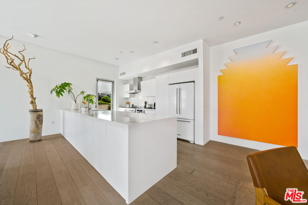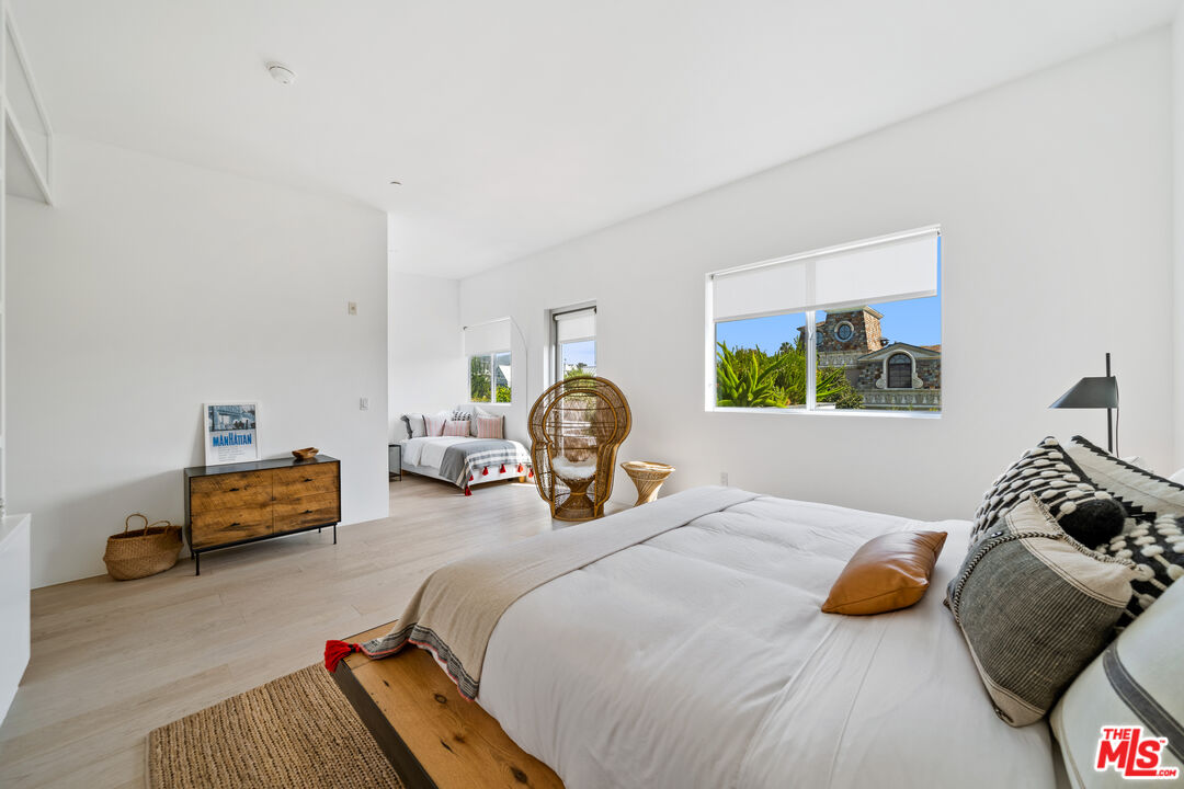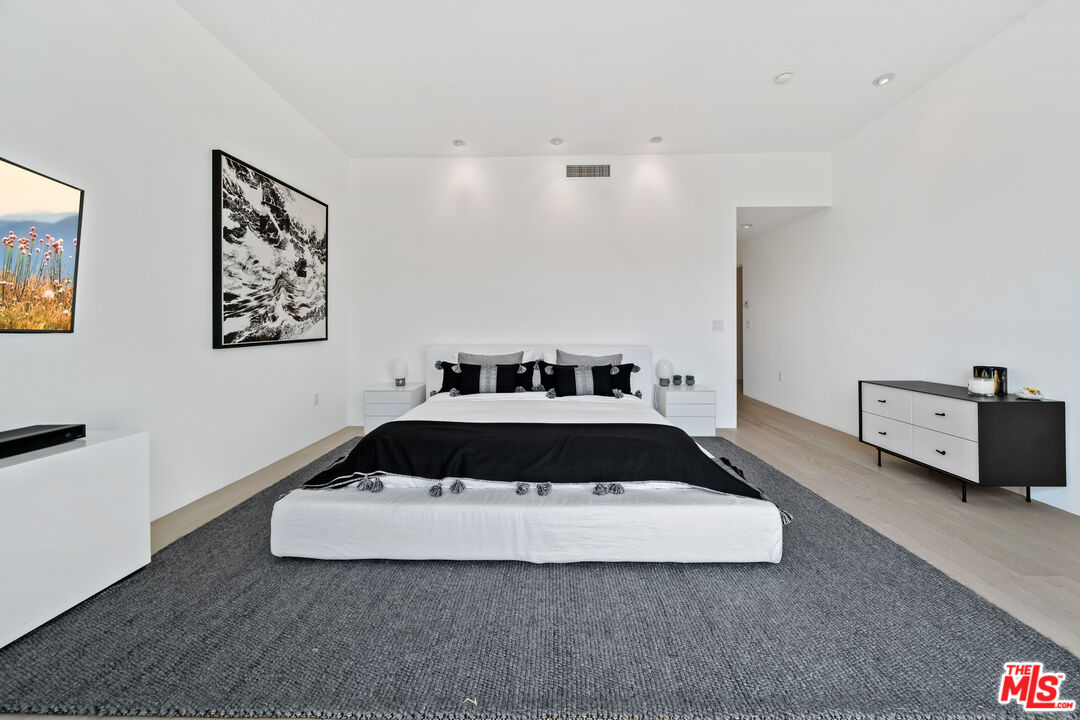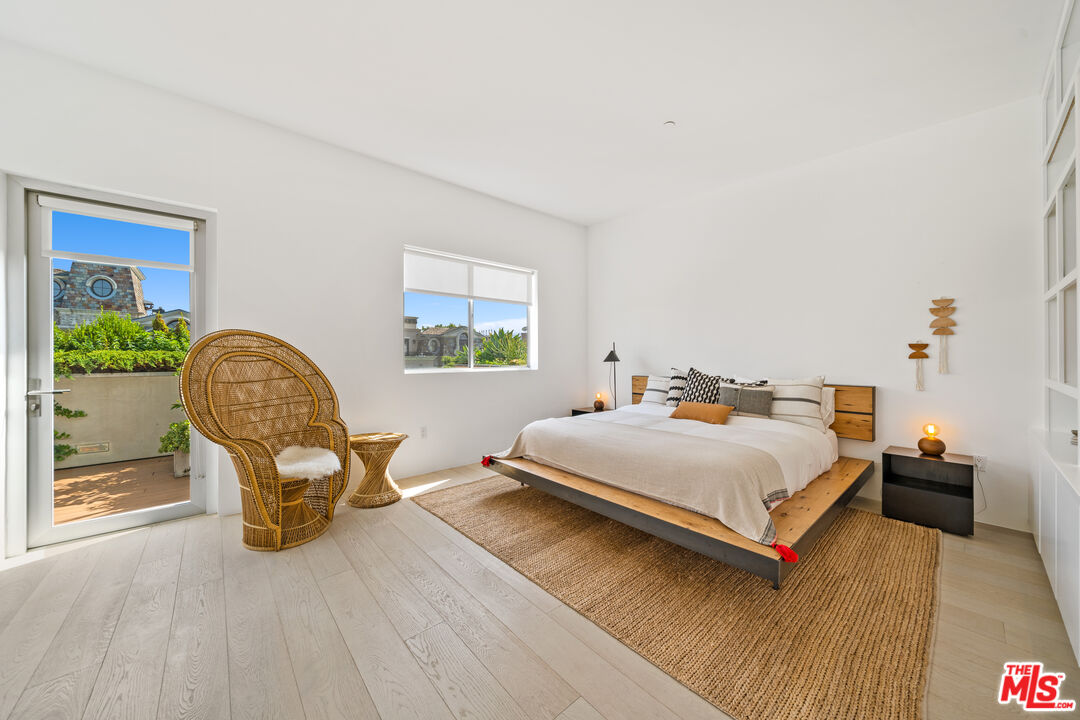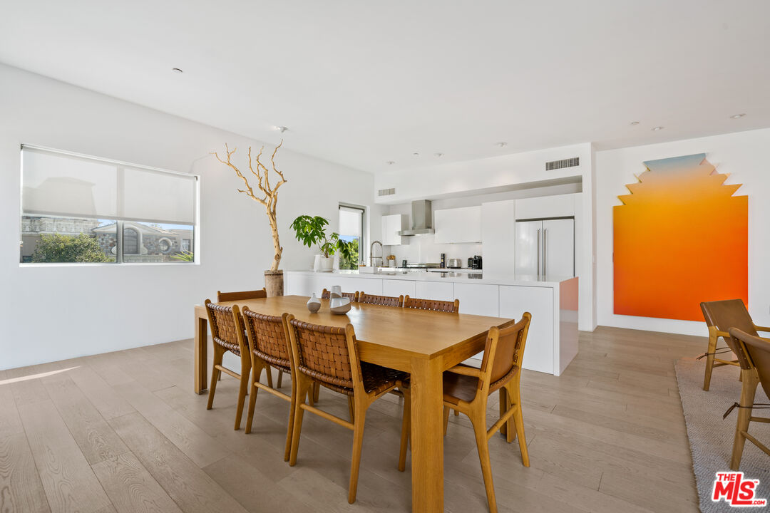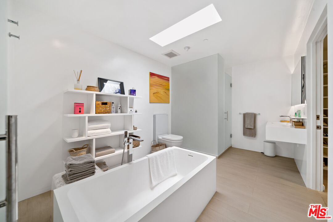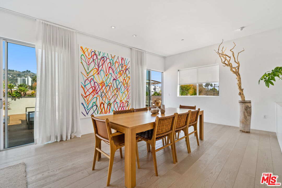 In a class by itself, this stunning single level designer penthouse has outdoor oasis living spaces in excess of 1200 square feet (Independently measured). Situated in a beautiful modern environment designed by Zoltan Pali for SPF: architects, it has all the convenience of lock-up and go living in the ultimate location in the Melrose district. This chic unit with high ceilings, huge walls for art, incredible finishes, abundant light and postcard views of the Hollywood Hills will excite you every time you see it. The open floor plan with jaw dropping immense deck flows seamlessly off the living room. There are two spacious primary suites each with beautiful patios. Unit comes with side-by-side parking, extra garage storage and in unit laundry room. Highly sought-after location just a short stroll to Melrose Place. Why buy a house when you can have all this outdoor space, no common walls and minimal upkeep. All furniture and furnishings are available for sale.