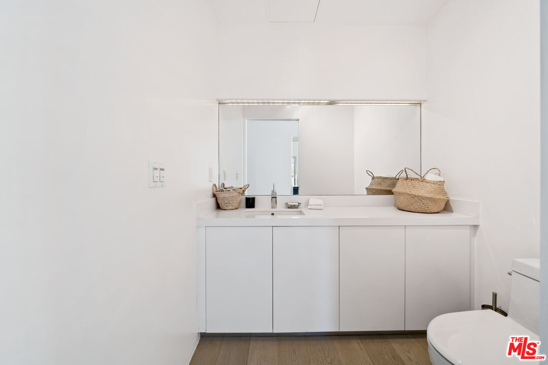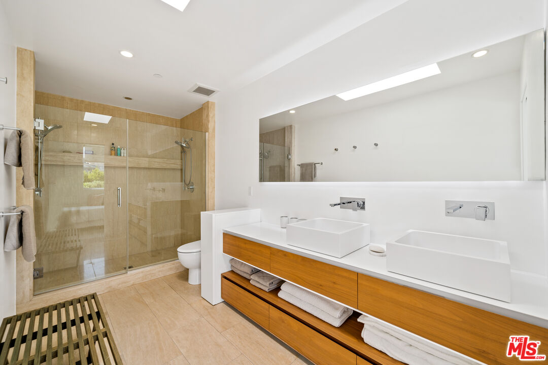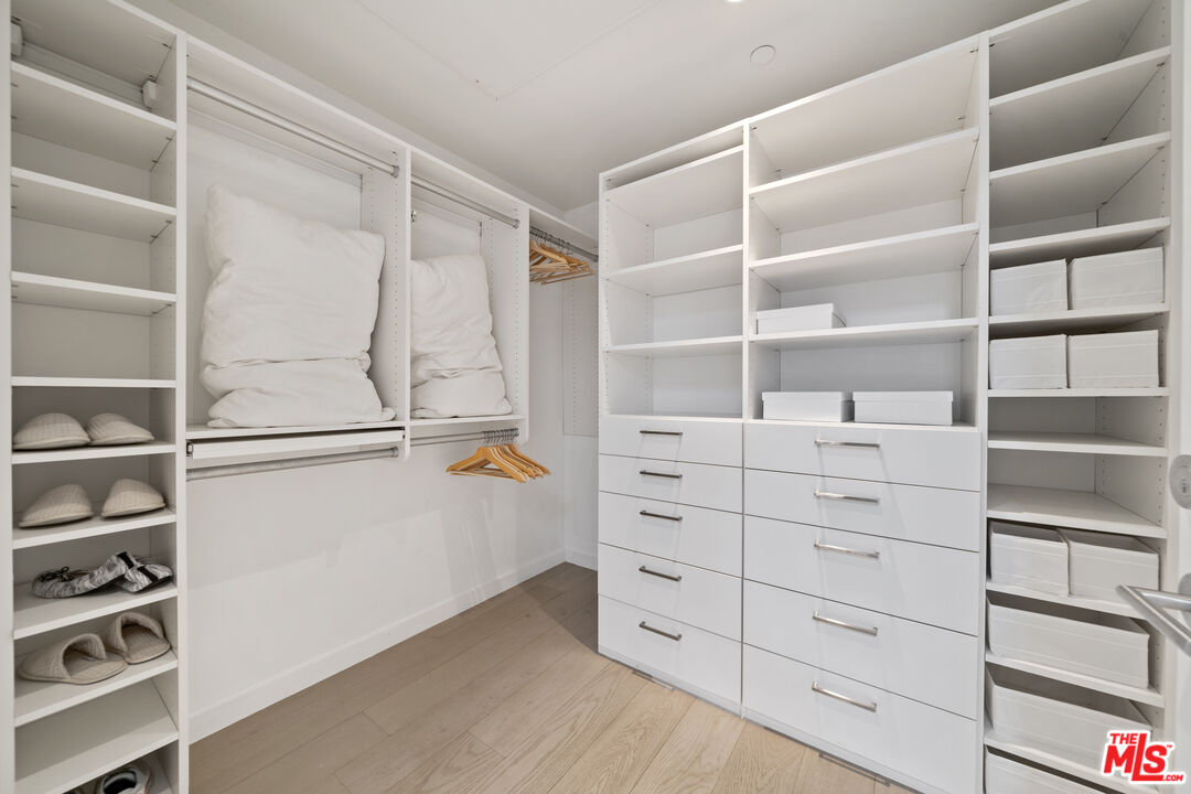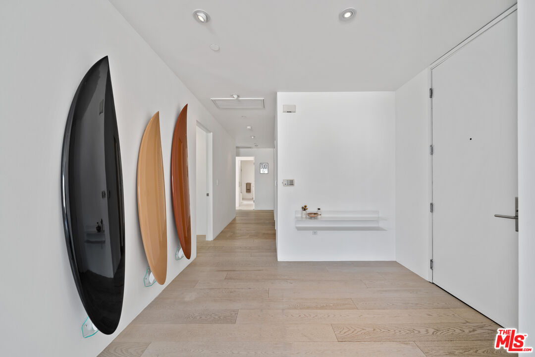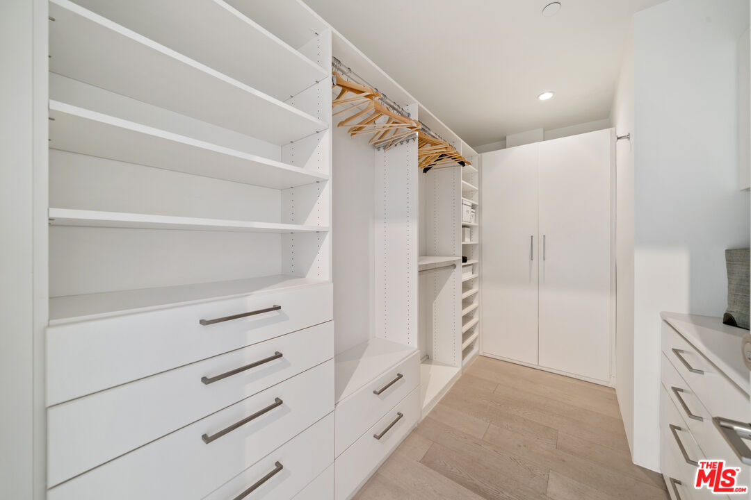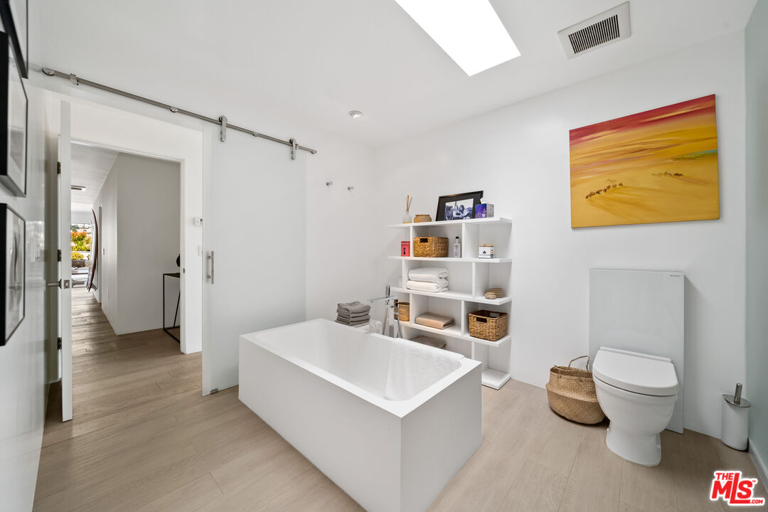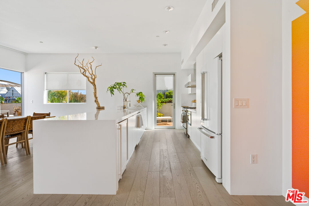 In a class by itself, this stunning single level designer penthouse has outdoor oasis living spaces in excess of 1200 square feet (Independently measured). Situated in a beautiful modern environment designed by Zoltan Pali for SPF: architects, it has all the convenience of lock-up and go living in the ultimate location in the Melrose district. This chic unit with high ceilings, huge walls for art, incredible finishes, abundant light and postcard views of the Hollywood Hills will excite you every time you see it. The open floor plan with jaw dropping immense deck flows seamlessly off the living room. There are two spacious primary suites each with beautiful patios. Unit comes with side-by-side parking, extra garage storage and in unit laundry room. Highly sought-after location just a short stroll to Melrose Place. Why buy a house when you can have all this outdoor space, no common walls and minimal upkeep. All furniture and furnishings are available for sale.