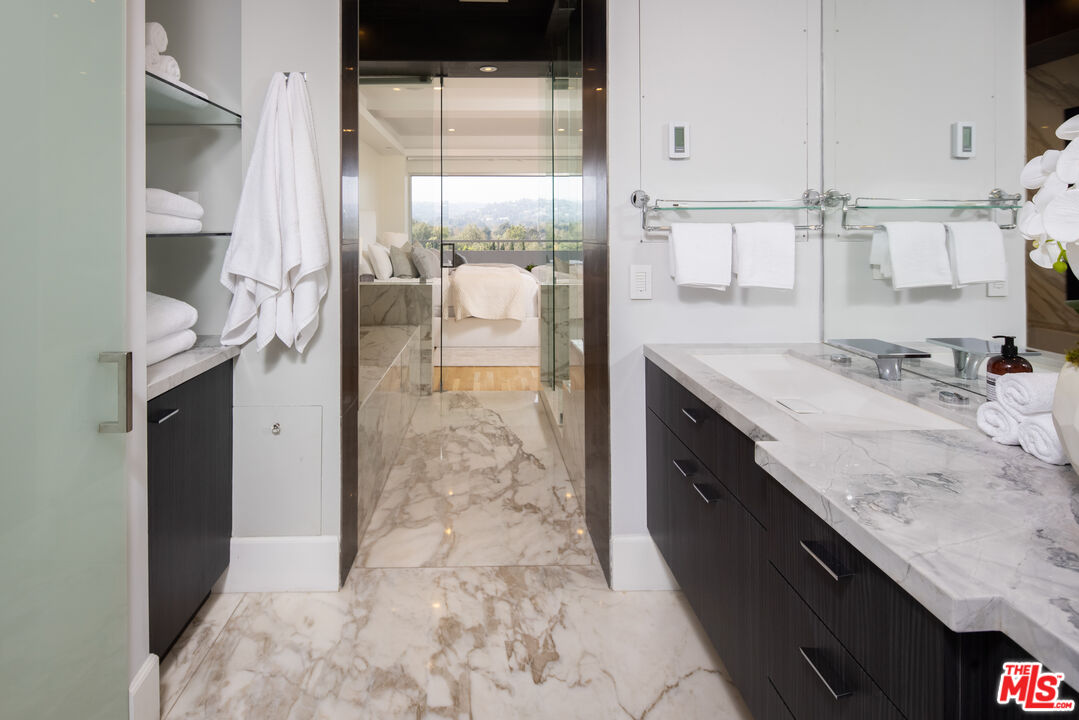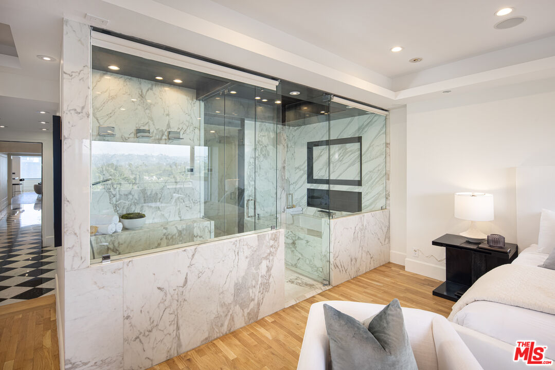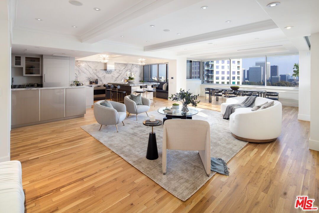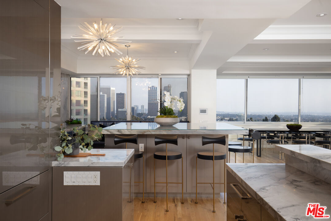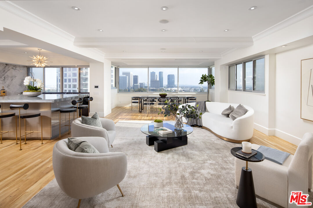 Set on one of LAs most exclusive streets, The Comstock exudes a life of luxury, complete with world-class amenities and 24-hour doorman/valet service. As you walk inside your sprawling, renovated 3,479-square-foot unit, you are bathed in natural light from Southern, Western, and Northern exposure. Sitting elegantly in the clouds, you have a birds-eye, unobstructed view of the north course at the L.A. Country Club, as well as panoramic views of the former Spelling Mansion, Getty Hillside, Bel-Air, Beverly Hills, and Hollywood. The spacious open-plan boasts 4 impeccably-appointed bedrooms, with a primary suite w/ two oversized walk-in closets, an expansive balcony with views of rolling greens at the LA Country Club, hillsides of Bel-Air. The Primary Bath features a spa-like experience with a large steam shower and marble Jacuzzi tub. The top of the line chefs kitchen features custom and all built-in appliances; dual refrigerators, two separate ovens, a wine fridge and microwave by miele and subzero. Lastly, indulge in the open floor plan of the family room and dining area, ideal for entertaining. Resort-style amenities include 24 hour valet, guest parking, concierge services, doorman, banquet rooms, report-style pools and spas, and fitness center. With a few minutes of access to Beverly Hills, Century City, UCLA, and the 405 Freeway, plus so much more.