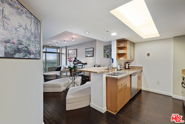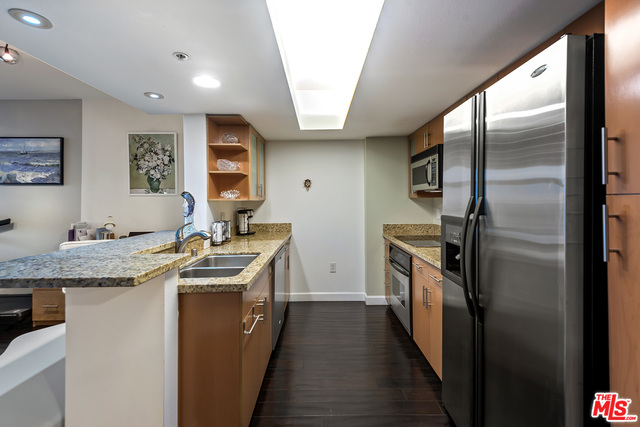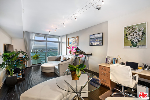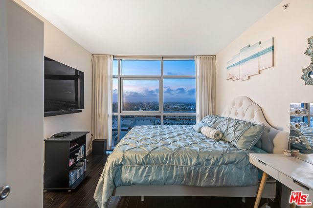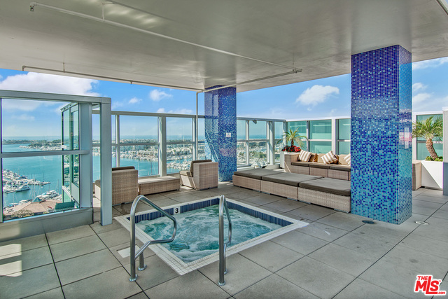 Upgraded 1 bedroom, 1 bath condo with unobstructed mountain, city, Marina and ocean views from the 9th floor. This one of a kind 1 bedroom is priced to sell. Unit features dark hardwood flooring, floor-to-ceiling glass walls, customs built in desk, extra built in closet in master, granite counter tops in kitchen and baths, all stainless steel appliances, large balcony, and 2 car parking. Enjoy luxury full-service, high-rise living with unbeatable amenities and services: cable, fiber optic Internet, 24-hour security and front desk/concierge, complimentary guest valet parking, rooftop spa and sky lounge with 360 degree panoramic ocean, city and mountain views, outdoor kitchen, sparkling heated pool and spa, business center media lounge, fine art collection, indoor and outdoor fitness center with yoga/Pilate's training studio and more. Ideal location close to shops, restaurants, beach bike pate, beach, dine-in movie theaters. Easy freeway access and LAX close.