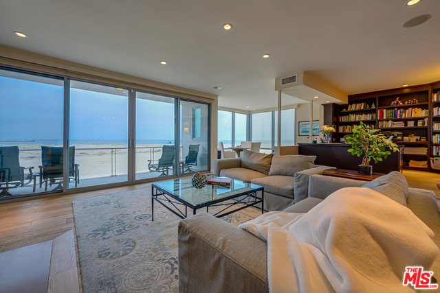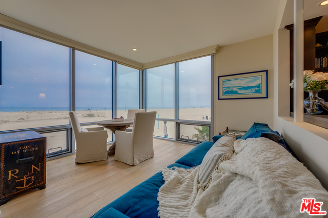 Unbelievable ocean, channel and mountain views from this 2,315 square foot north corner with 2 spacious bedrooms + den + built in office + large dining space with 3 balconies. This is truly one of a kind, tastefully remodeled condo in one of the most cared for buildings on the beachfront in Marina del Rey. Custom kitchen open to the living room, den and built-in office with hardwood floors throughout. The master retreat has its own sitting room with fireplace, plenty of closet space and the ensuite bath boasts a separate tub and shower done in stone and tile. The second bedroom is also ensuite and has a spacious wardrobe. Laundry room with built-in storage, powder room, coat closet and a back door that provides beach access directly from the condo. Move-in with your toothbrush.