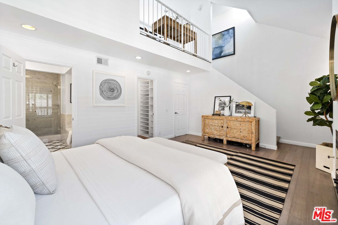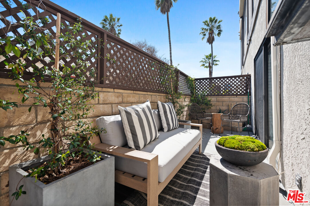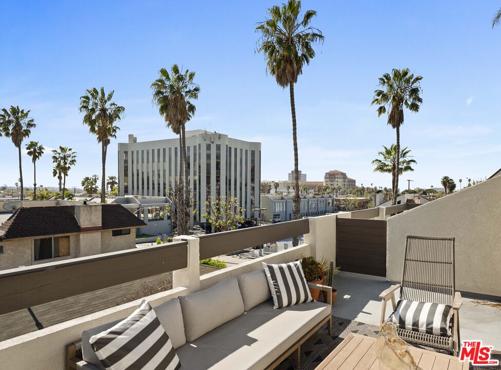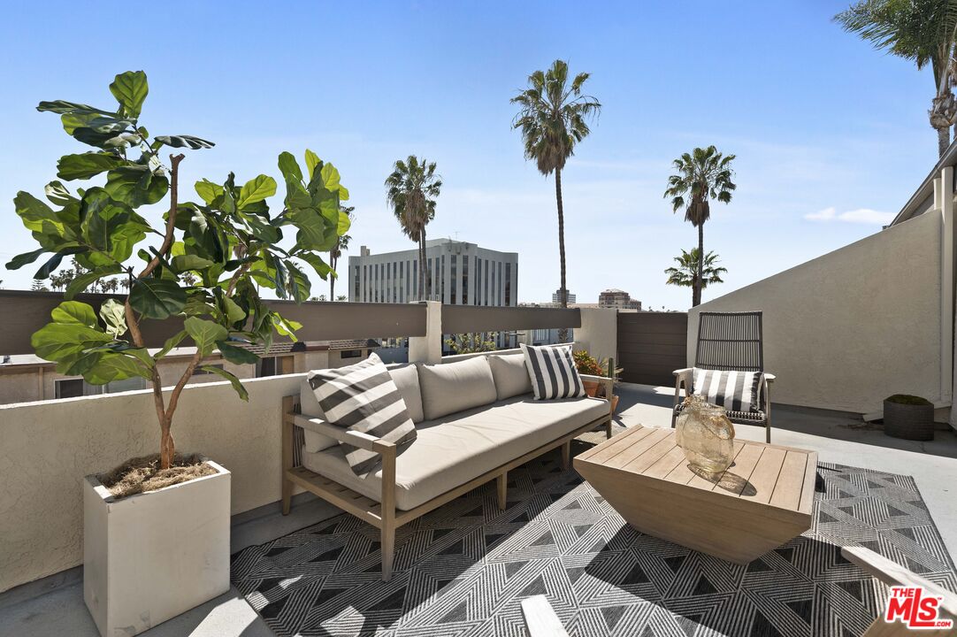 Pack your belongings and head to this bright and beautiful Santa Monica townhouse that combines style, functionality, and location. The light, the natural open flow, and the attention to detail will excite you the instant you walk into this home. The sun-soaked space, situated on a quiet, Palm tree-lined street just a few blocks south of Montana Avenue, features a serene Master suite with vaulted ceilings, a custom-designed walk-in closet, an en-suite bath with a walk-in shower, double vanity, and soaking tub. The library-like lofted office with flex/fitness area above the primary bedroom is nicely nestled away from the daily hustle and bustle, while the main living areas are seamlessly connected to the outdoor spaces for a true indoor/outdoor lifestyle. Choose between dining on the ground level patio, or lounging on the large, beautiful rooftop deck with sweeping views of Santa Monica and beyond. An entertainer's kitchen, braided Carrara marble backsplash, gorgeous new grey bamboo flooring, and two modern fireplaces will make you fall in love. Enjoy central heating and air conditioning, a washer/dryer in the unit, and a two-car private garage with direct access. We can't wait for you to visit!