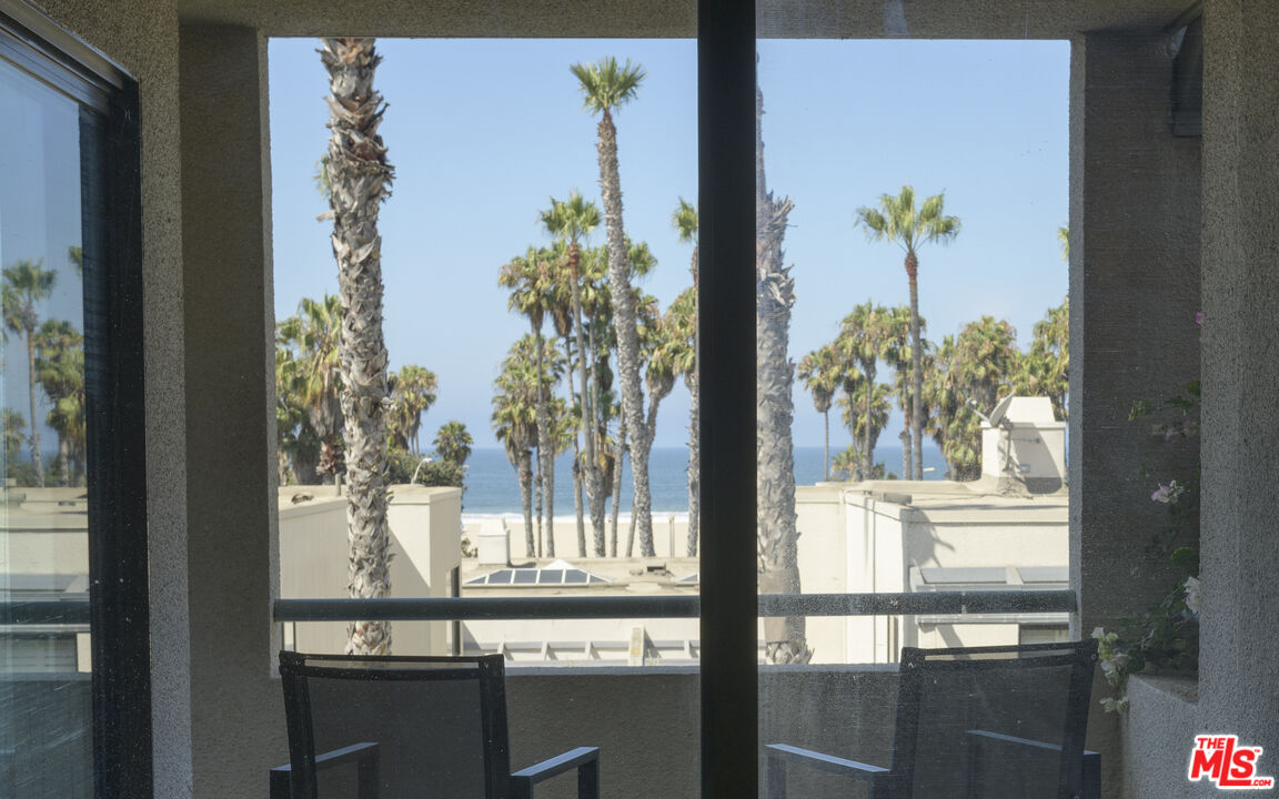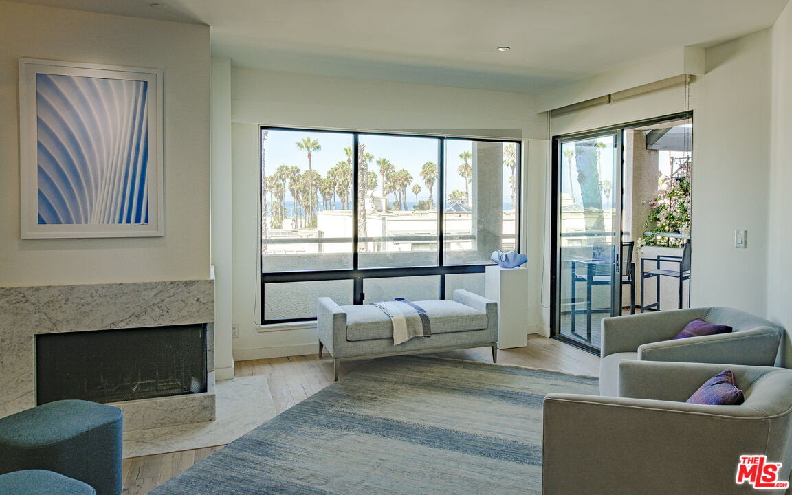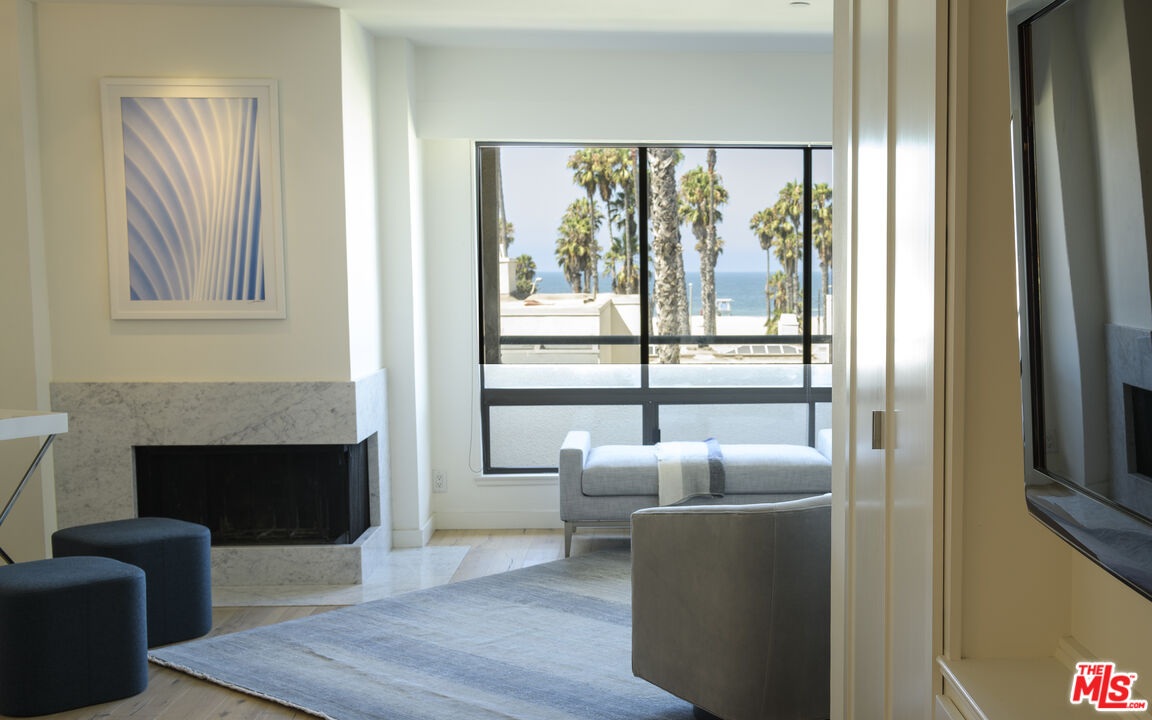 This spacious, light-filled 2 bedroom 2 bath totally remodeled turnkey condo within prestigious Sea Colony III is a half-block from the beach, close to restaurants, shops, and all that Ocean Park has to offer. Open the door to white water ocean views from the living room, the sleek open kitchen, primary bedroom and balcony. Experience a wow factor from the hardwood floors and designer wallpaper to the Carrera marble wood-burning fireplace to the Caesarstone counters. The primary bedroom has direct access to the ocean view balcony plus a walk-in closet and ensuite bathroom with soaker tub and double sinks. The second bedroom provides privacy for guests with an adjacent full bath and spacious closet. The bonus home office space is ideal for remote work. With two side-by-side parking spaces and a deeded storage unit, the resort-style, luxury building offers a concierge experience, whether a full-time residence or vacation home. SCIII places an emphasis on privacy and safety, offering amenities including 24-hr security, three jacuzzis, swimming pool, sundeck, fitness center, saunas, yoga studio, bike storage, conference room, guest parking, multiple electric car charging stations, Amazon hub for secure package delivery. Close to Abbot Kinney, the Sunday farmer's market & weekly gourmet food trucks. This coastal living will feel like a vacation.