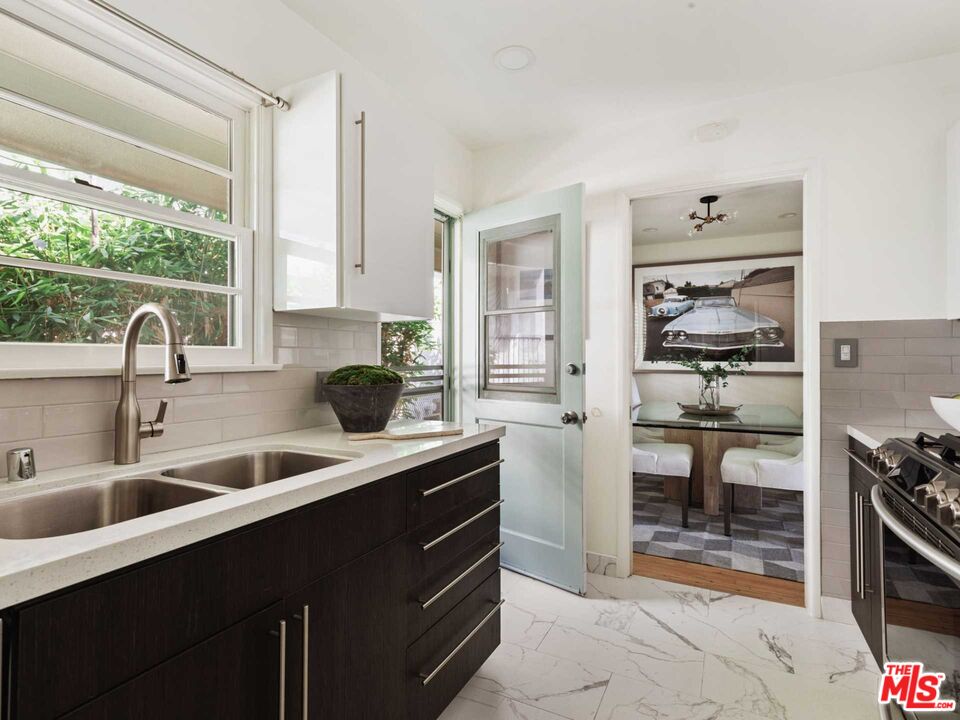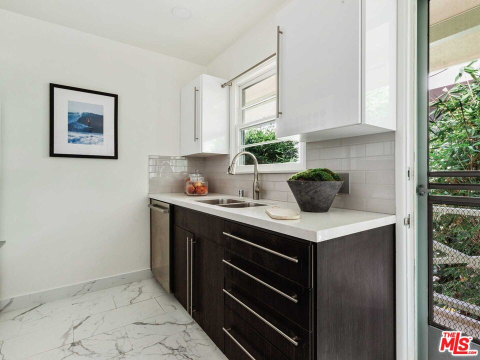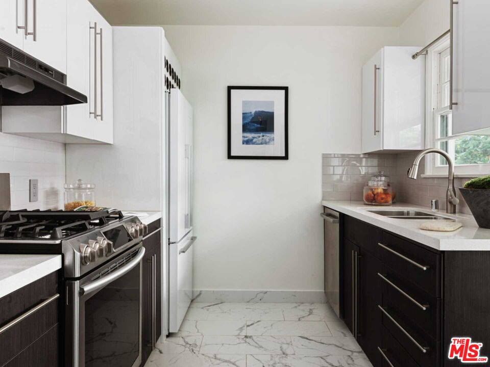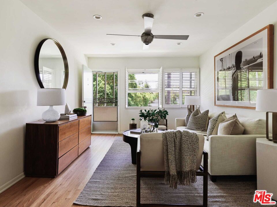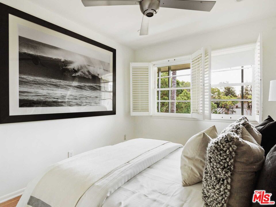 Ideally sited in one of the most coveted pockets of Santa Monica, just south of Montana Ave, stands this updated, top-floor residence with lush tree-top views. With elevated finishes at every glance, this unit is sure to impress even the most discerning buyer. The spacious living room with newer window shutters and light washed oak flooring, spills seamlessly into the dedicated dining area--the ideal space for hosting a small gathering. The modern, gourmet kitchen is adorned with a Fisher and Paykel French door refrigerator, 6-burner Samsung range and oven and Bosch dishwasher. Down the hall, you'll find the primary bedroom and a fully renovated bathroom with Toto toilet, illuminated vanity mirror and shower with dual heads. Enjoy ultimate privacy and a refreshing ocean cross-breeze from the ample doors and windows throughout the home. Downstairs, a private, finished garage can be used for parking, storage or a home gym. Other amenities include: Ring doorbell, built-in wine rack with storage for 14 bottles and ample storage throughout. All this, just moments from the beach the world-class dining and shopping of Montana Ave and the Third Street Promenade.