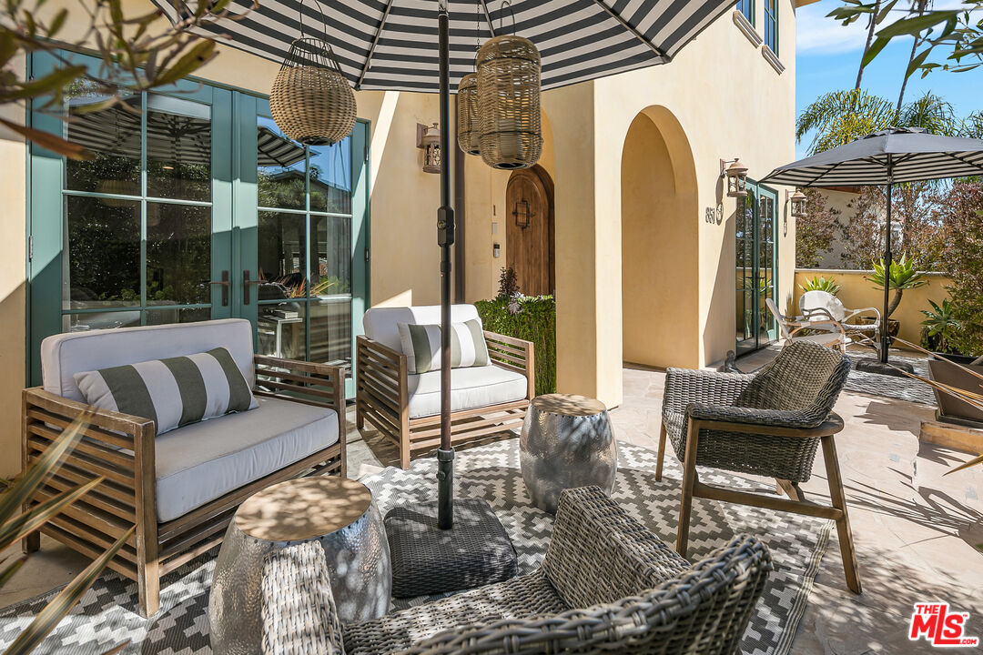 The one you've been waiting for: an impeccably appointed townhome in prime Santa Monica, half a block from Montana. Much like a single family home, this front facing and completely private residence boasts an ideal open floor plan, with the finest of touches. Remodeled in 2019, the home features many custom, designer fixtures throughout. Enter from the picturesque front yard, and be greeted by two of your very own private patios as you approach your front door. A spacious living room with fireplace, formal dining room, and gourmet custom kitchen with breakfast bar anchor the first floor. French doors off each space open up to the most serene terrace settings, lending gorgeous light to every room. Upstairs you'll find the awe inspiring primary suite, with vaulted ceilings, walk-in closet, spa-like ensuite, and your own private balcony featuring picture perfect palm tree views. The additional suites are of the same caliber - tasteful, thoughtful, spacious and bright. It doesn't end there.. A private roof deck offers views and an ideal place to entertain. Complete with a private, direct access two car garage. Truly a once in a lifetime opportunity to live in one the best neighborhoods in Los Angeles - walking distance to the best shops, dining, and entertainment the west side has to offer.