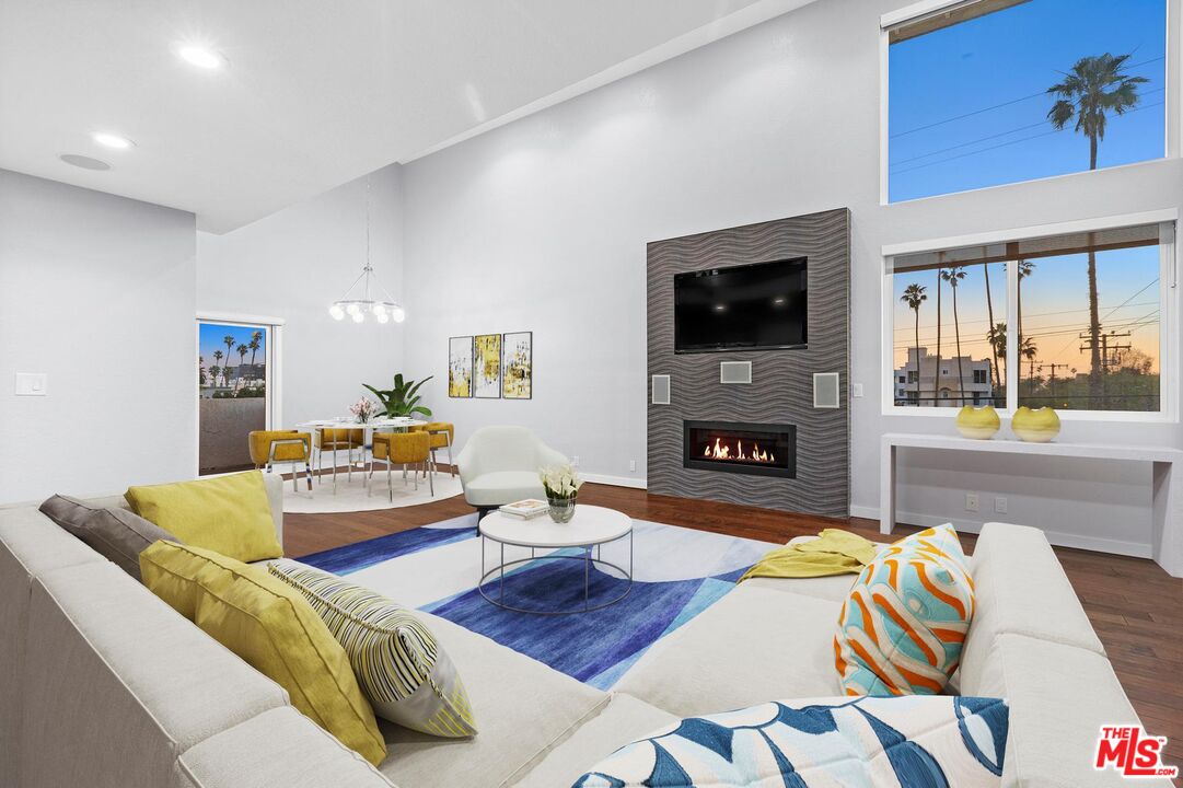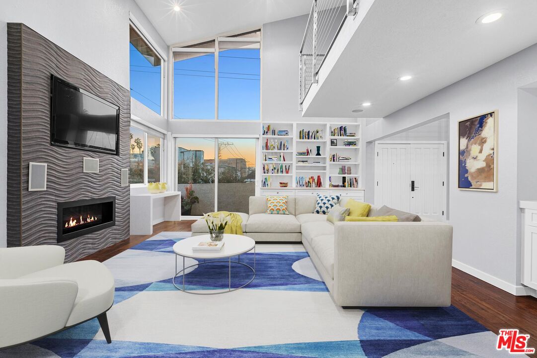 Incredible light and bright coastal oasis in the heart of beloved Santa Monica! a sweeping open floor plan beautifully accented by vaulted ceiling, built-ins, sleek wood floors, floor-to-ceiling windows for an abundance of natural light with stunning city and mountain views, and multiple balconies for coveted al-fresco living. Sleek and stylish, the chef's kitchen boasts top-of-the-line Viking and Miele stainless-steel appliances, wine fridge, extensive cabinetry for storage, eat-in center island, and chic tile backsplash. At day's end, retreat to the spacious primary suite with spa-like en-suite bath boasting glass shower, heated floors, soaker tub, built-ins, and dual-sink vanity. Additional features include living room with fireplace, formal dining room, well-appointed guest rooms, luxe baths, ample storage, side-by-side parking, and in-unit laundry. Large bonus loft living area leads out to a private rooftop sundeck with views of soaring palms, treetops, and ocean.