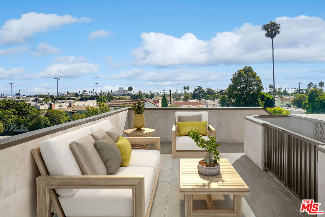 Beautiful, finely appointed 3 bedroom, 3 bath townhouse. Built in 2015 and exceptionally located near Montana Avenue's dining, shopping and cafes. Over 1,500 sqft of interior living space, hardwood floors, central AC and fantastic outdoor space! Gourmet kitchen with top-of-the-line stainless steel appliances, gas range and breakfast bar. Spacious living room opens completely via folding doors to large patio. Thoughtfully designed floorplan allows for either dining room or den, or an owner could enclose to create a main floor bedroom! Building and unit is wheelchair accessible. Primary bedroom features dual walk-in closets and a luxurious bath with soaking tub. Large rooftop deck enjoys views to the ocean! 2-car sideXside parking in garage.