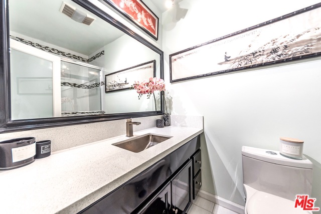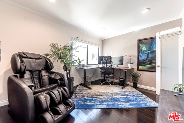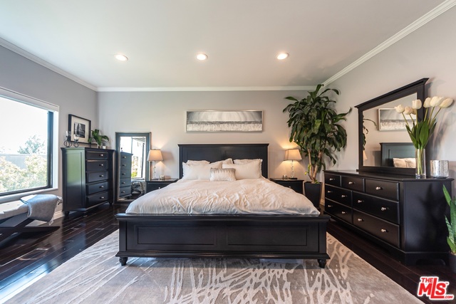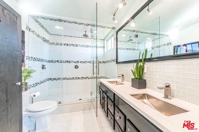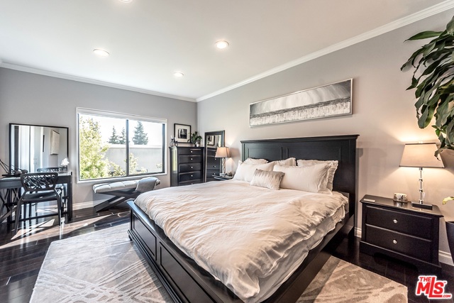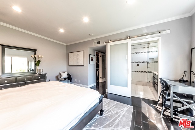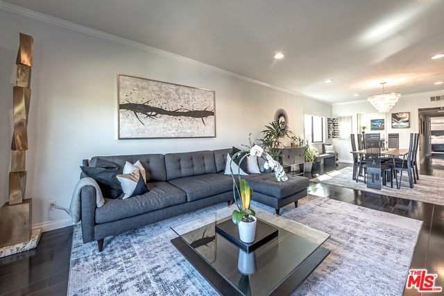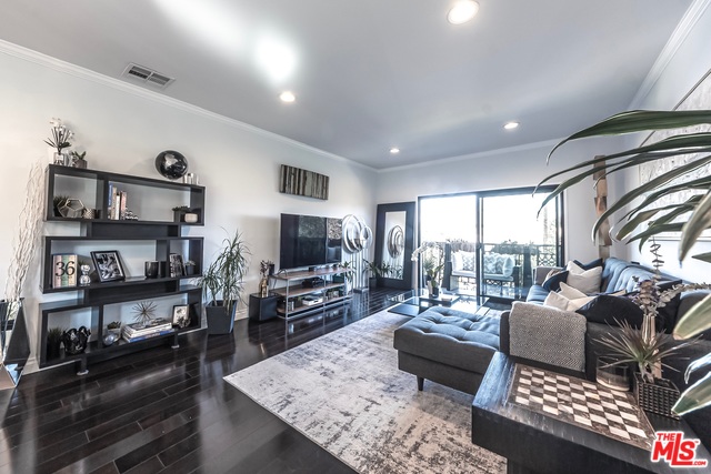 Top floor, corner unit provides ample natural sunlight throughout the day. Completely renovated condo features hardwood floors, recessed lighting, electric black out blinds for all main windows, "smart home" hardwired with Nest, crown molding, stainless steel kitchen appliances and top of the line bathroom fixtures. New AC/Heat installed in 2018. Spacious Master suite offers en-suite with dual sinks and double shower heads. Walk-in closets in both bedrooms. Two side-by-side parking spots in gated garage along with extra storage space. Building has indoor pool and jacuzzi and large roof deck providing access to sun lounging and spectacular sunsets. "Walker's Paradise" with a Walk Score of 92. Just minutes from shops, restaurants, entertainment and all that West Hollywood has to offer! HOA includes water, trash and EQ insurance. Please visit our 3D virtual tour/interactive experience.