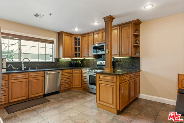 MOTIVATED! Big Reduction...Seller says sell! Spacious (1797 sq ft) move-in ready townhome in the heart of West Hollywood featuring 3 bedrooms & 2 1/2 baths. Large living rm & dining area with high ceilings & recessed lighting that looks out to a private patio. Remodeled kitchen with granite countertops, custom cabinetry, many brand new stainless steel appliances, with an adjoining breakfast area & plenty of light from the large window. Includes Inside laundry. The top floor bedrooms are en suite, roomy & both have walk in closets. The spacious primary bedroom features a big remodeled bath with separate tub & shower. Upstairs has a small bonus room in unit plus a huge private storage studio off the garage which could be used as an art studio, open workspace/office. Townhome looks out to bamboo forest, shrubbery and trees. Total of 3 units in building w/amazingly low HOA of $225.00 monthly. Side by side parking