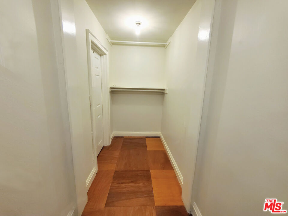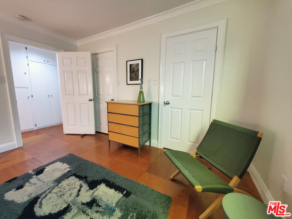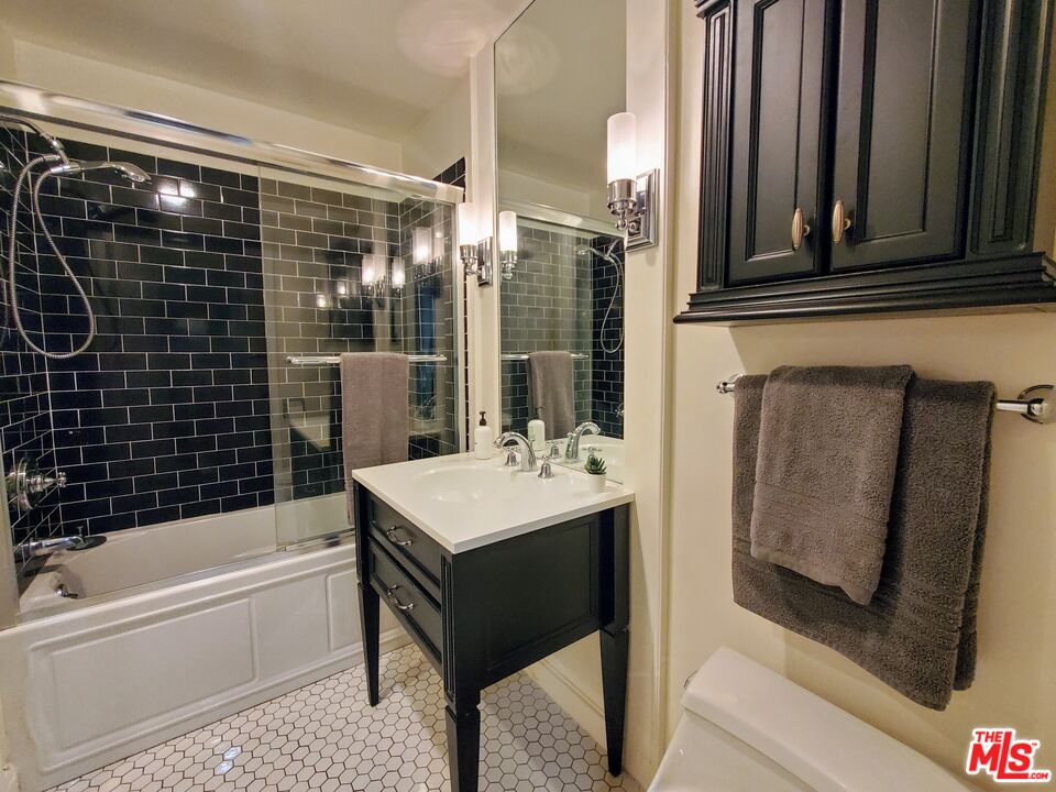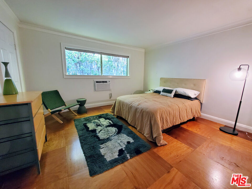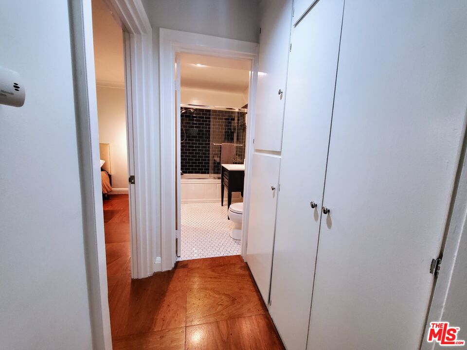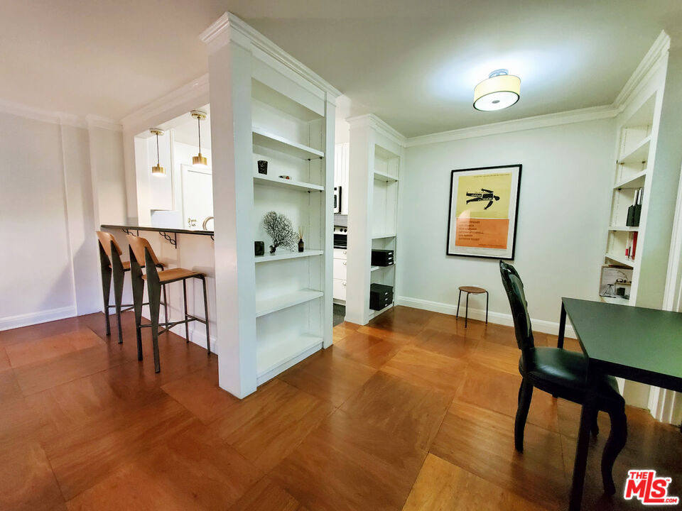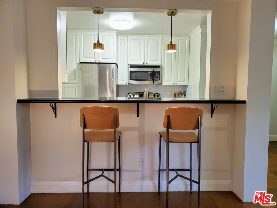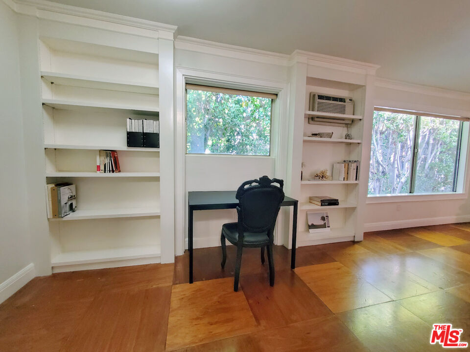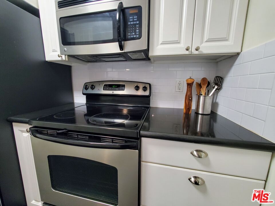 Welcome to the official location of the middle of EVERYTHING! Located between Sunset and Santa Monica Boulevards in desirable West Hollywood, you are seconds away from world class restaurants, cafes, bakeries, shopping, night clubs, chic hotels, and the world-famous Pacific Design Center. Also bordering Beverly Hills, this is the LA equivalent to Manhattan! With a "walk-score" of 92, this is one of the few locations in LA where you truly do not need a car. This lovely top floor unit (NOBODY ABOVE YOU) feels like you are living in an elevated tree-house with north facing tree-lined views. A large living room area allows for different seating arrangements and options for living space, built-in bookcases and a separate dining area. The galley kitchen has updated stainless appliances, electric stove, custom cabinetry, granite countertops, and a peek-through with counter seating. The primary bedroom is large and spacious with a gigantic walk-in closet with two entrances. The bathroom has lovely cabinetry, a shower/tub combo, mosaic tilework, and polished nickel fixtures. The building features extremely reasonable HOA dues, updated hallways and lobby, fitness area, large heated courtyard pool and lounge area, and a rooftop sundeck with sofas, tables and a stunning view of metropolitan Los Angeles. Comes with one underground security parking space, and storage closet. Community laundry but may be allowable 'in-unit' if approved by HOA.